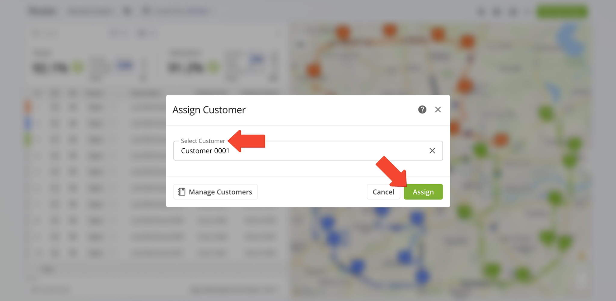 Select “Assign Customer” to connect a customer profile to selected routes. This links deliveries or services to a specific account for tracking, reporting, and management.