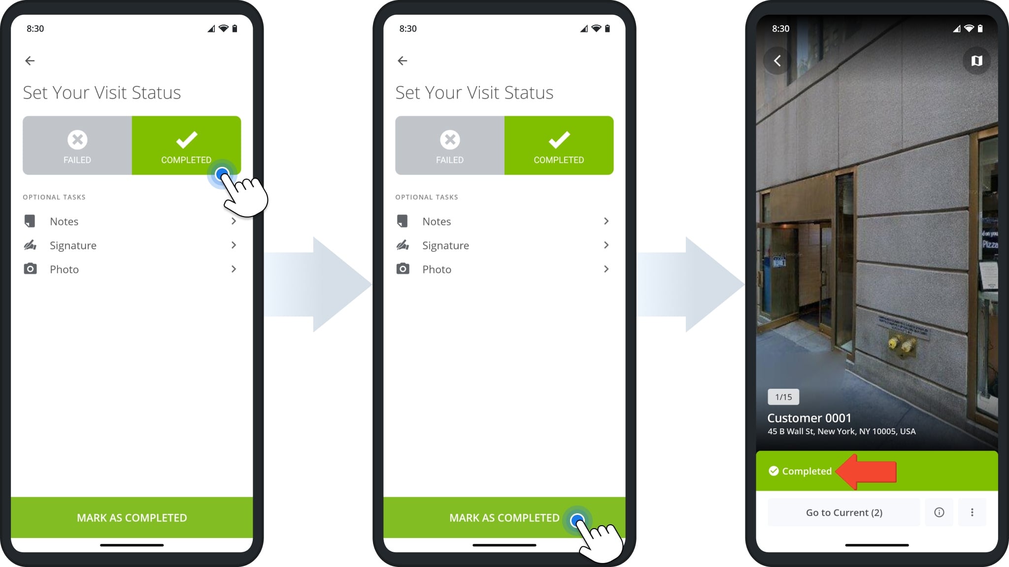 After selecting a status, tap the “Mark As” button to confirm the status. The stop will be automatically updated.