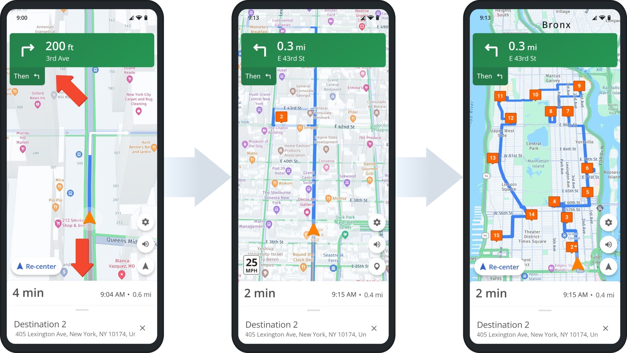 The image below shows the difference between navigation modes. Specifically, “Single Destination Navigation” is used to navigate to one location, and navigation closes once you’ve arrived.
