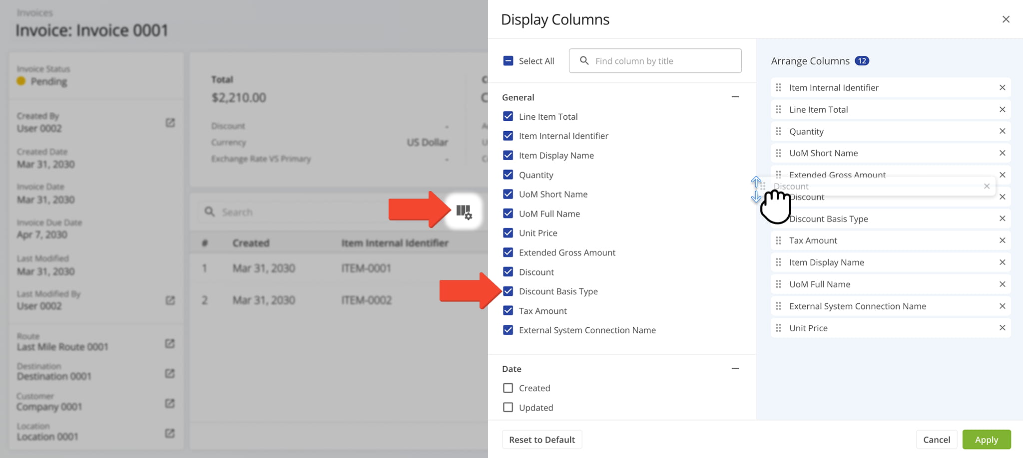 To customize the data displayed in the table, click the Column Icon to select which data fields appear and adjust their order to suit your operational needs.