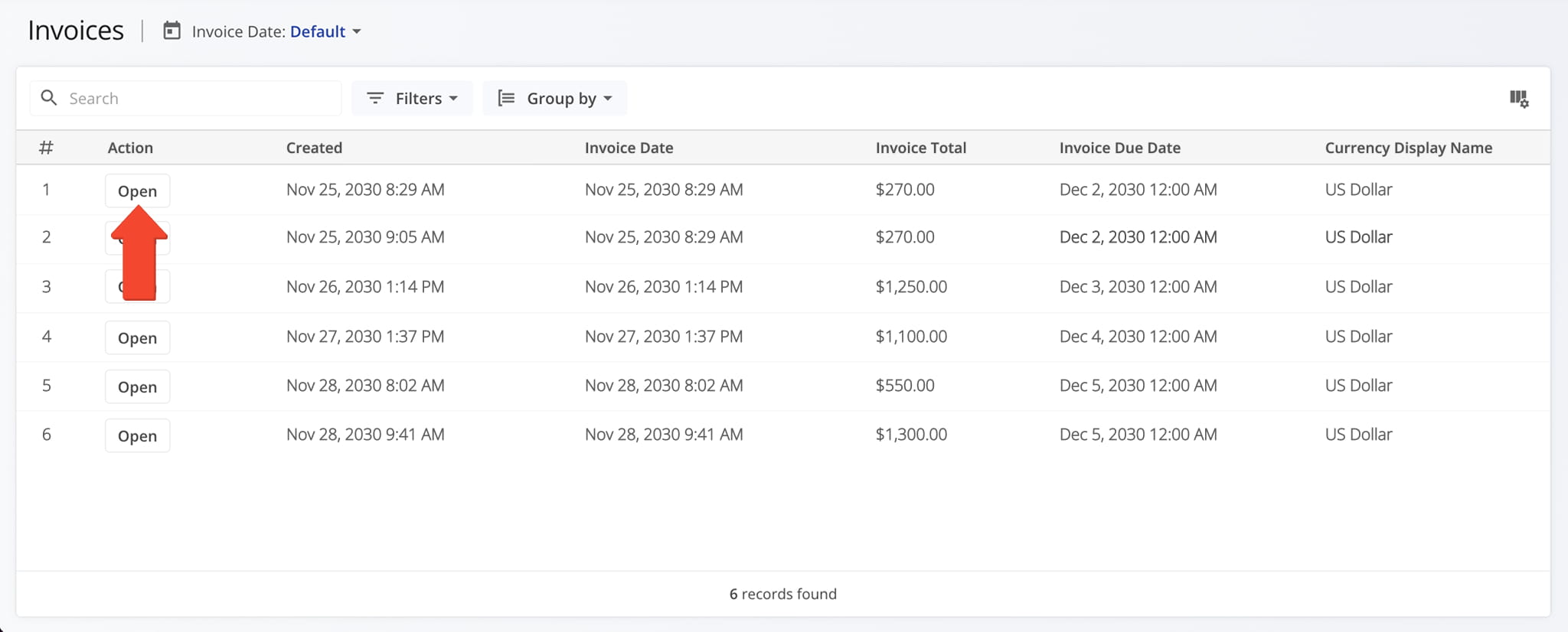 - Use the Search field to locate a specific invoice.
