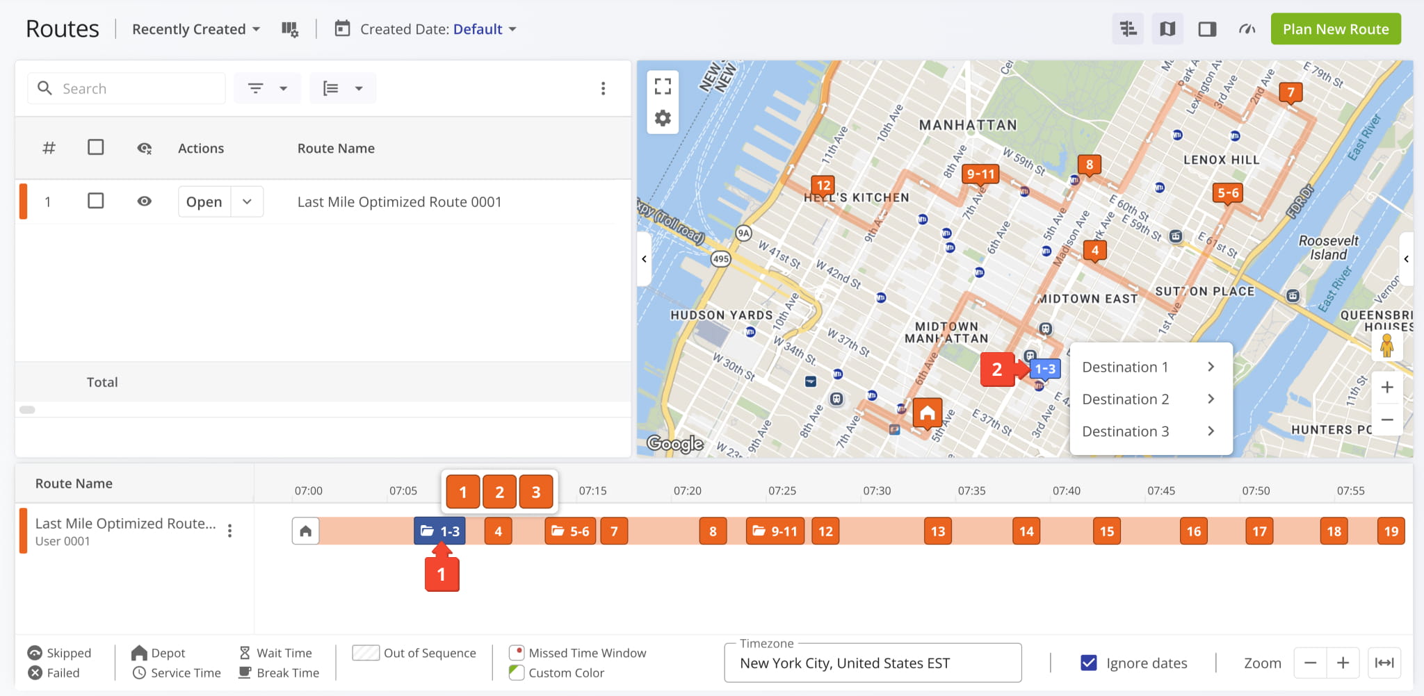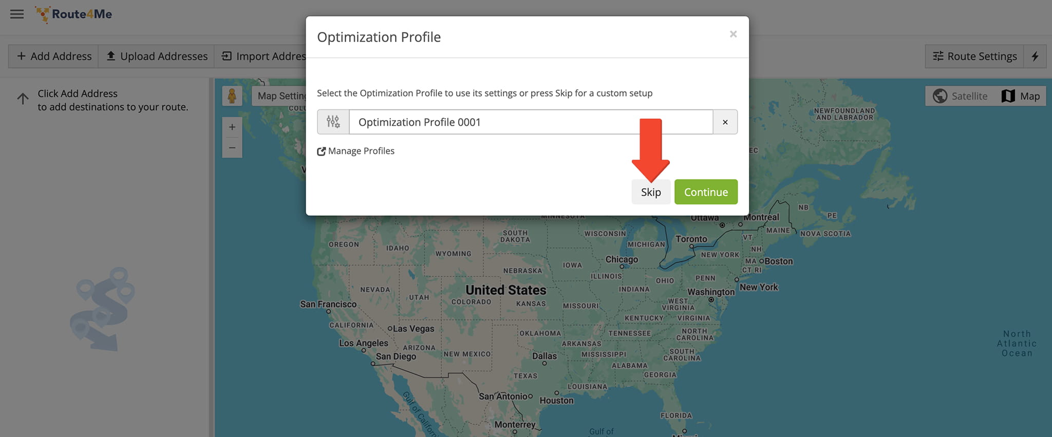 To bundle destinations from manual optimization settings, go to “Dynamic Routing” > “Plan New Route” in the Navigation Menu. Choose your route planning method, then be sure to click “Skip” to customize the route’s optimization settings.