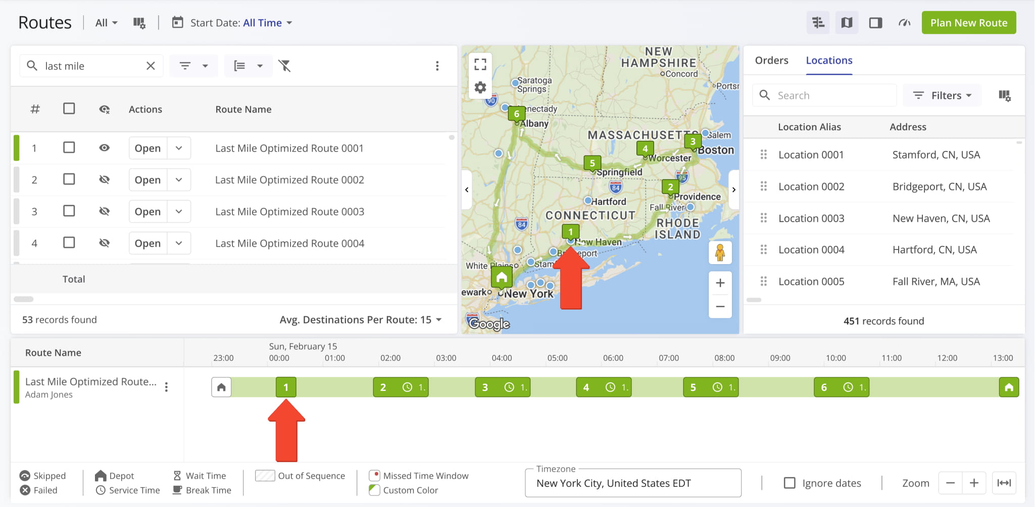 With Route4Me, you can effortlessly insert destinations into planned last mile routes and instantly re-optimize them. To simplify the process of adding Orders and Customer Locations to routes as new destinations, you can simply drag and drop them into planned routes at any sequence position. Keep reading to learn how to use the Routes Map and Routes Timeline to drag and drop Orders and Locations into your planned and optimized routes.
