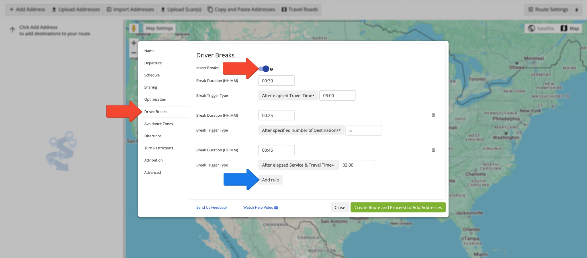 Manually Adjust Driver Breaks Settings When Planning Routes