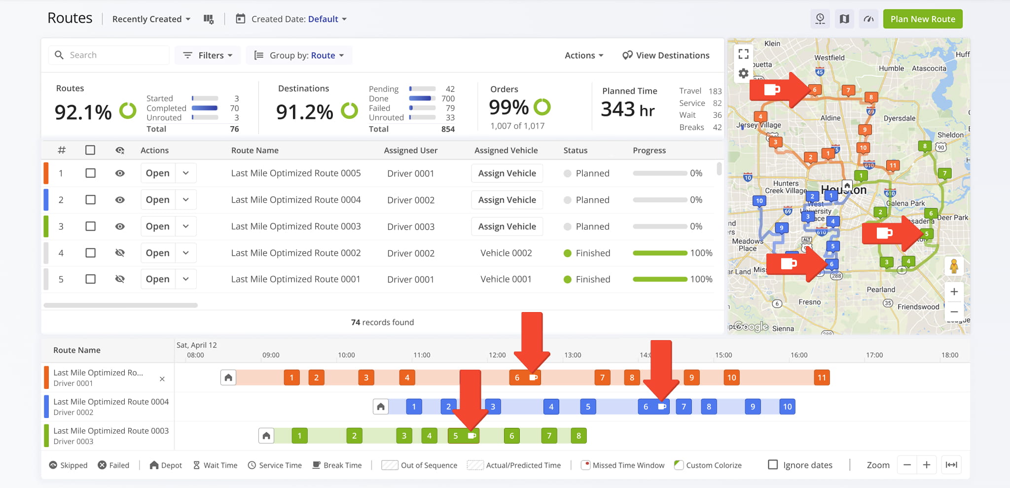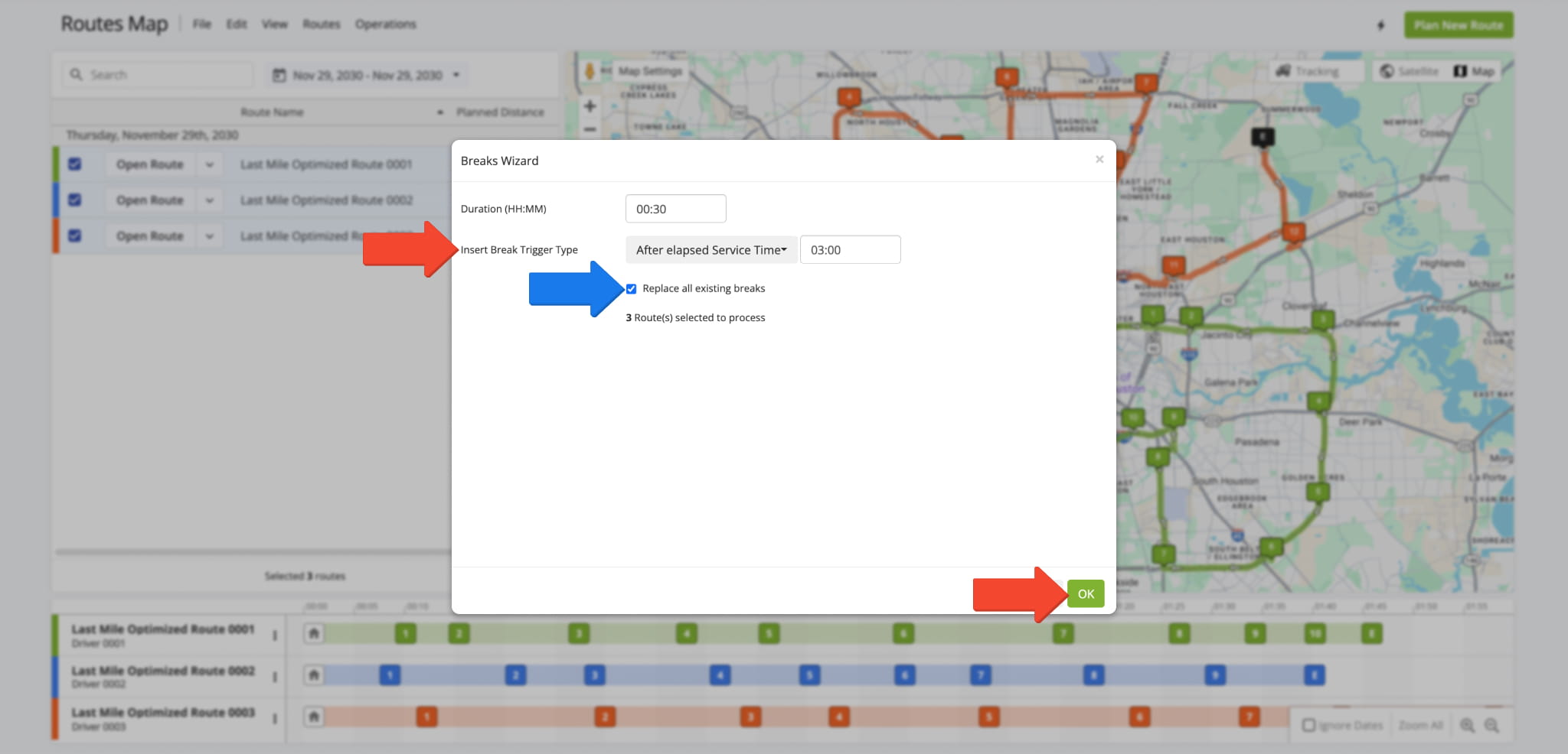 Use Interactive Multiple Routes Map To Insert Driver Breaks Into Planned Routes