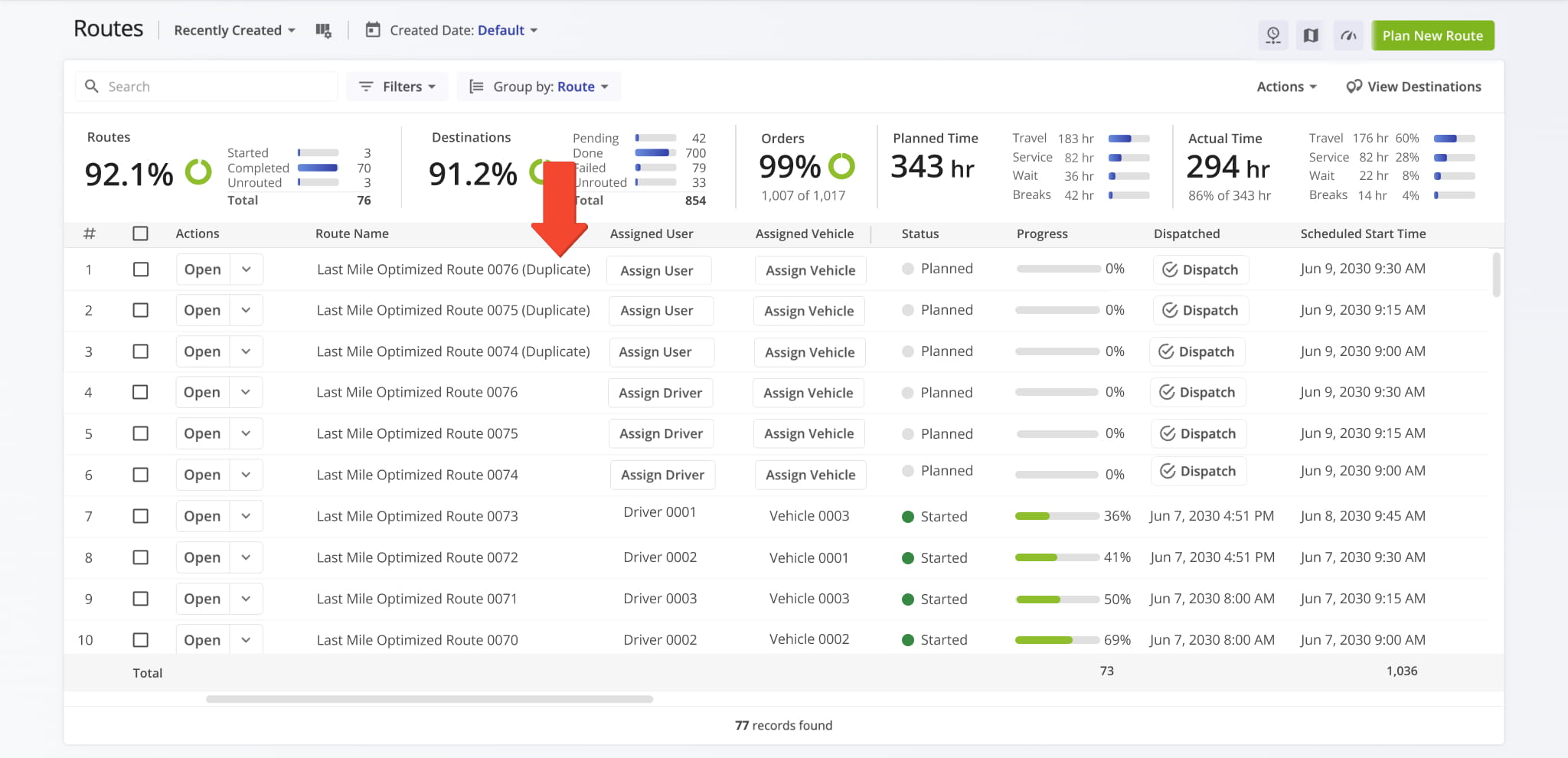 The duplicated route will automatically appear in your Routes List with “(Duplicate)” added to the route name.