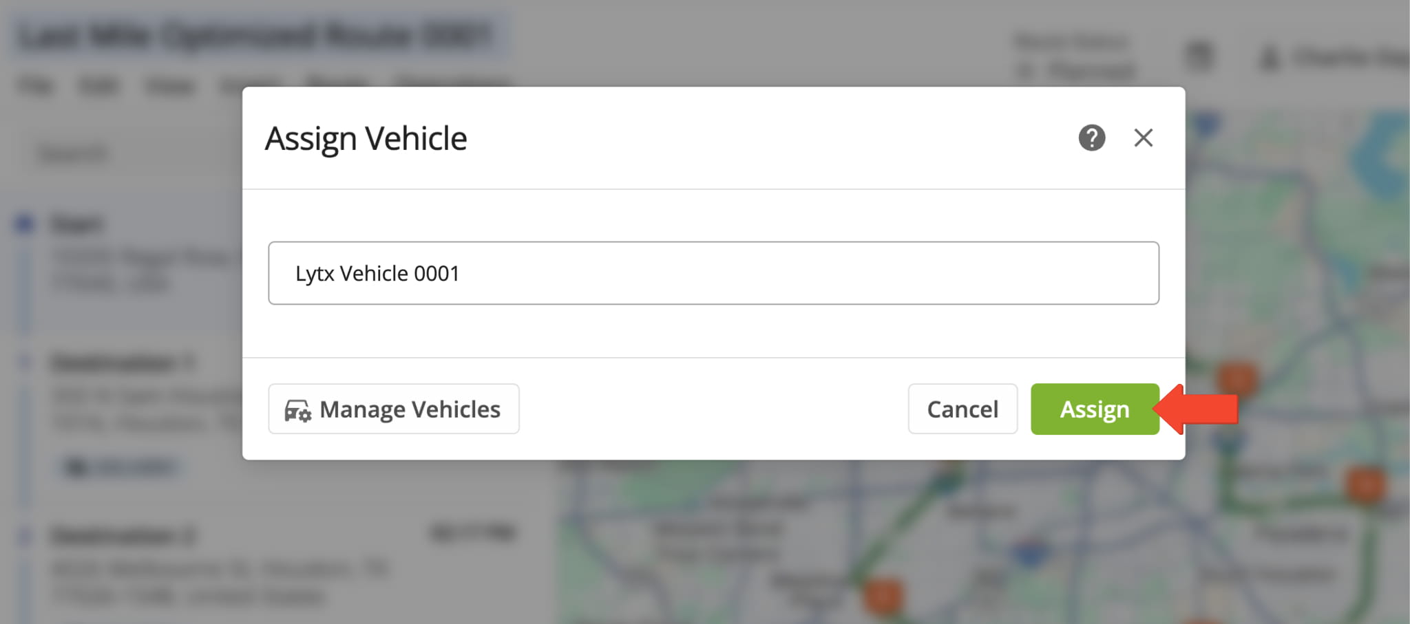 Then, from the Routes Map, Routes List, or Route Editor, you can assign the vehicle.