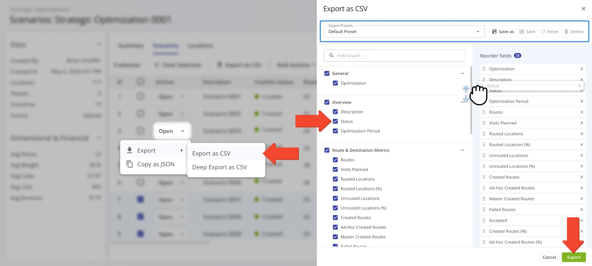 Export Scenarios And Routes As Customizable CSVs And JSON Code