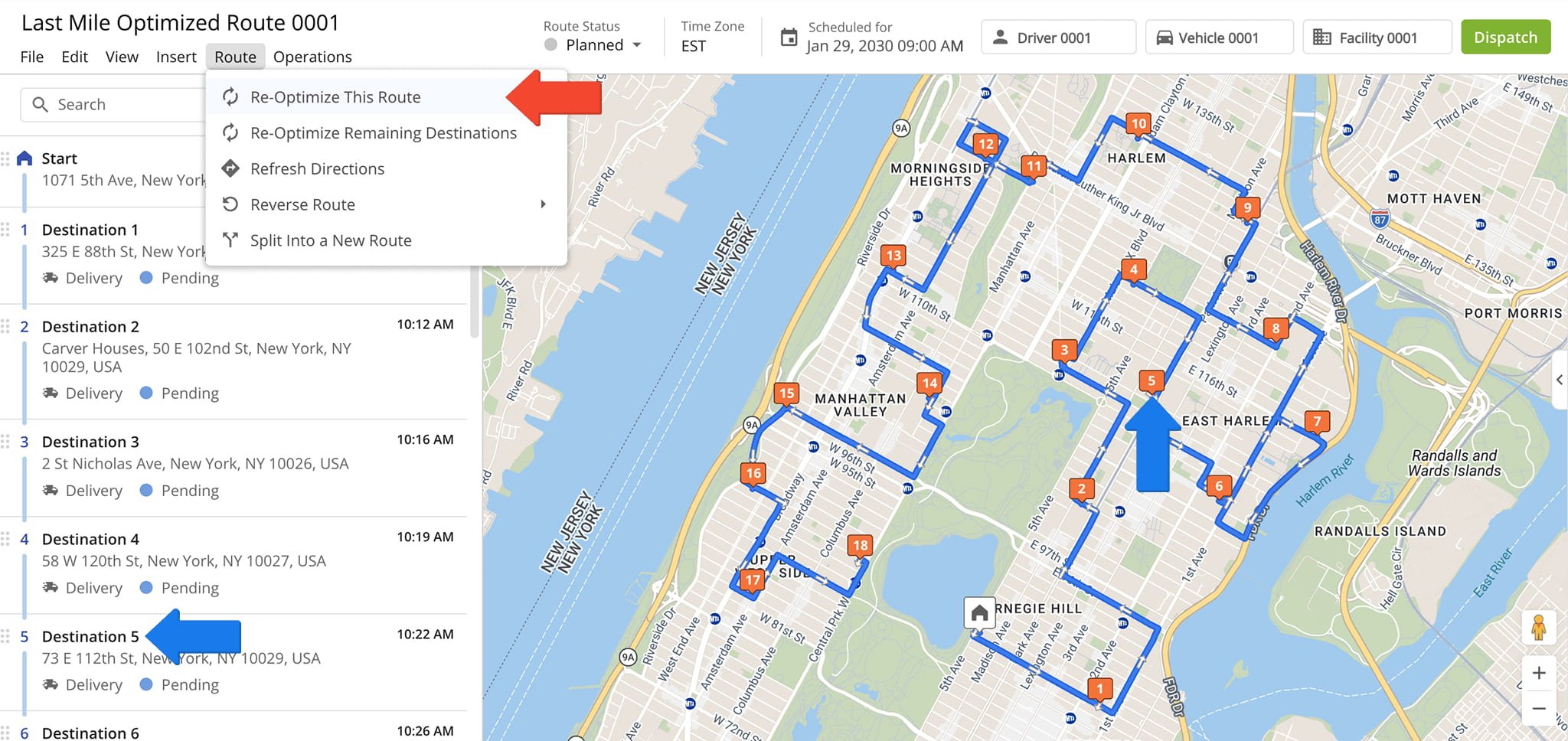 You can also adjust route destinations from the Routes Editor. From the Destinations List, simply drag and drop a destination to any position within the route sequence.