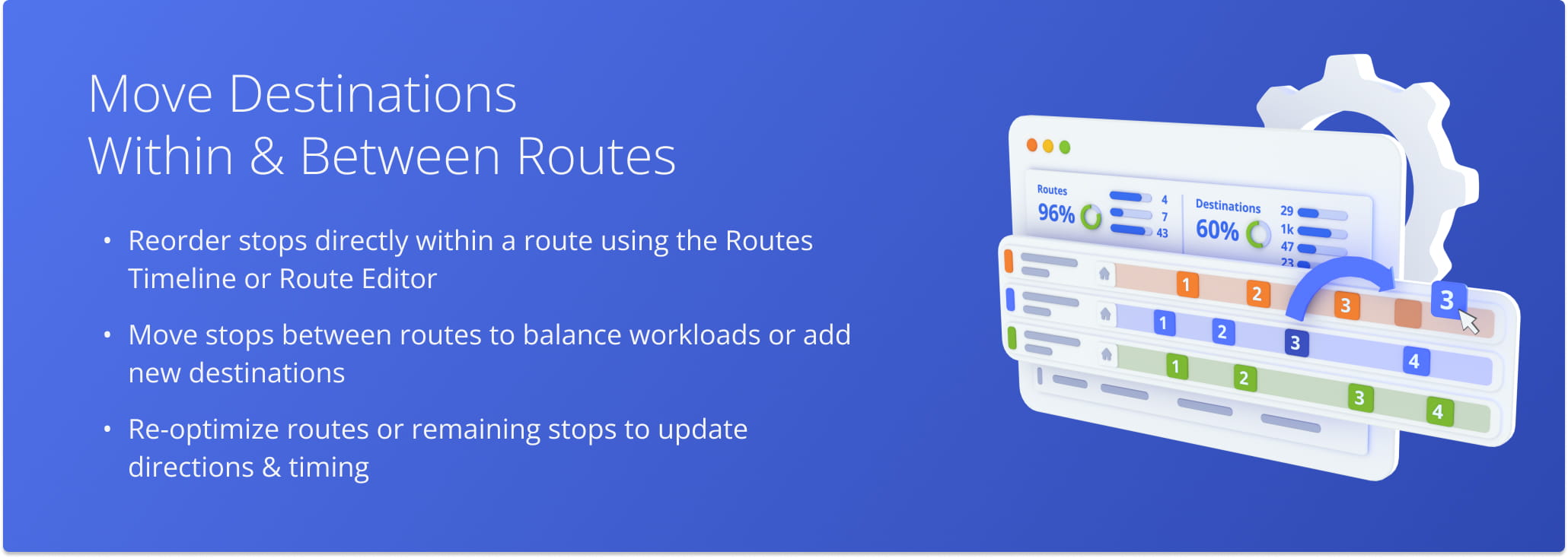 For enterprise businesses, effectively managing delivery or service stops is essential to keeping last mile operations running smoothly. From Route4Me’s Routes Timeline and Route Editor, route planners and managers can adjust destinations within a route or move them between routes without recreating the schedule. With real-time control over stop sequences, teams can balance workloads, adapt to changing priorities, and keep drivers on track.