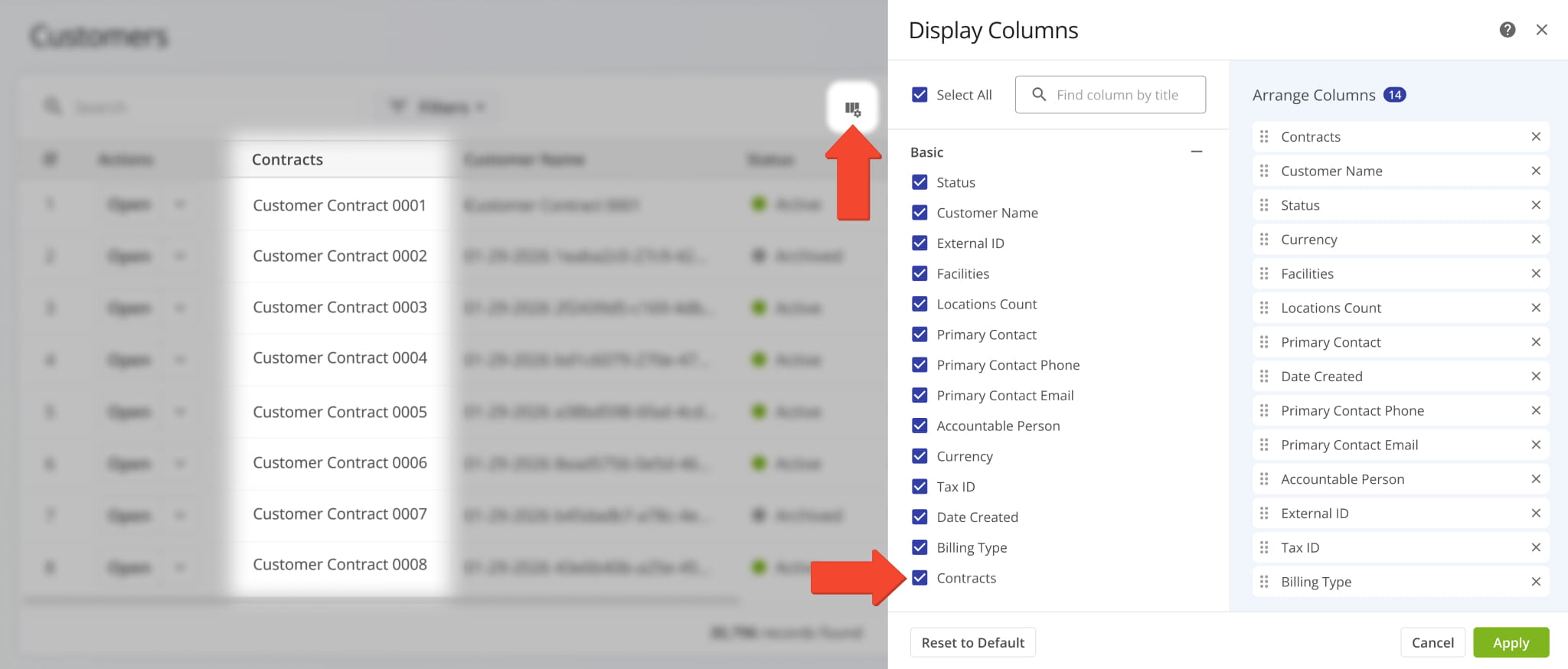 A new “Contracts” Display Column was added to your Customers Page. It shows the specific contracts associated with Customers.
