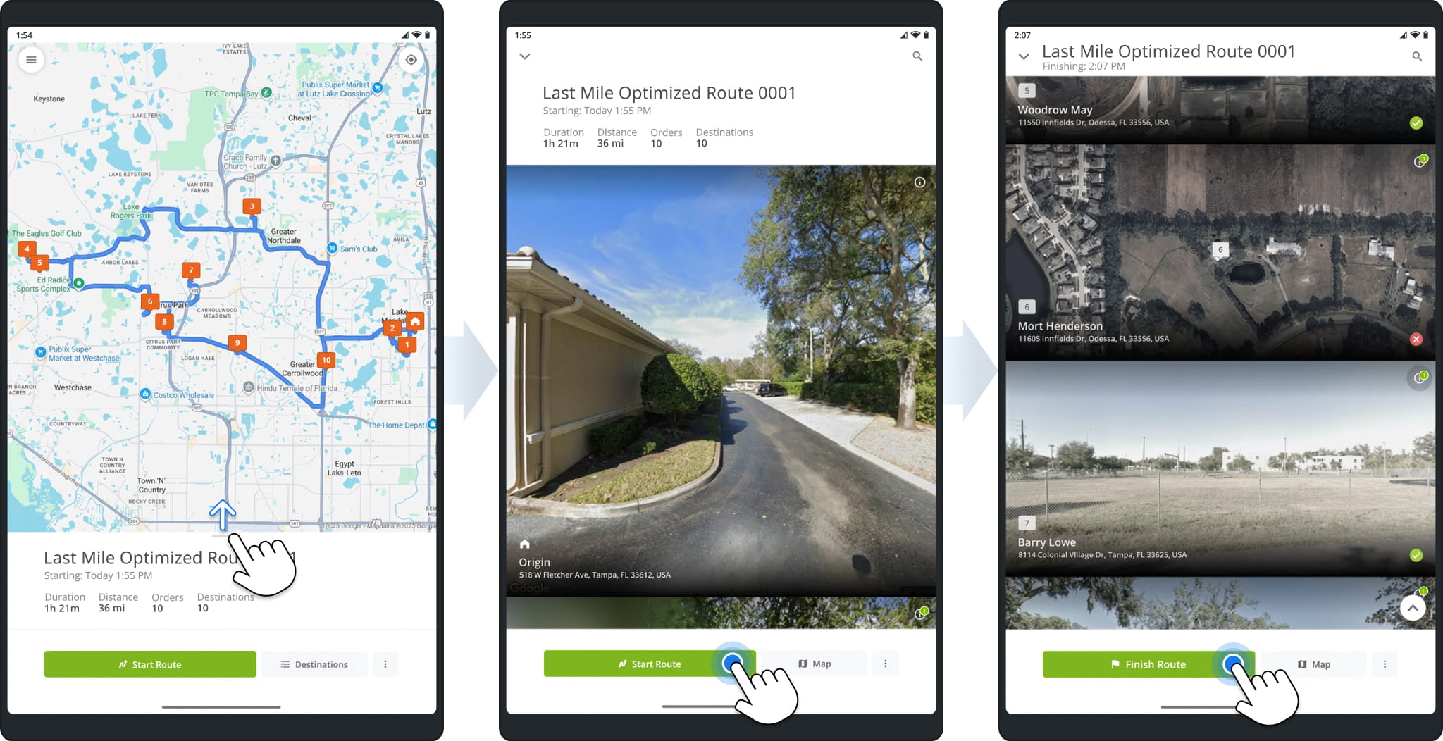 This version of the Route4Me App brings Visually Immersive Mode to tablets for the first time. It enables users to get more context for destinations with immersive street views and streamlines starting, navigating, and completing routes.