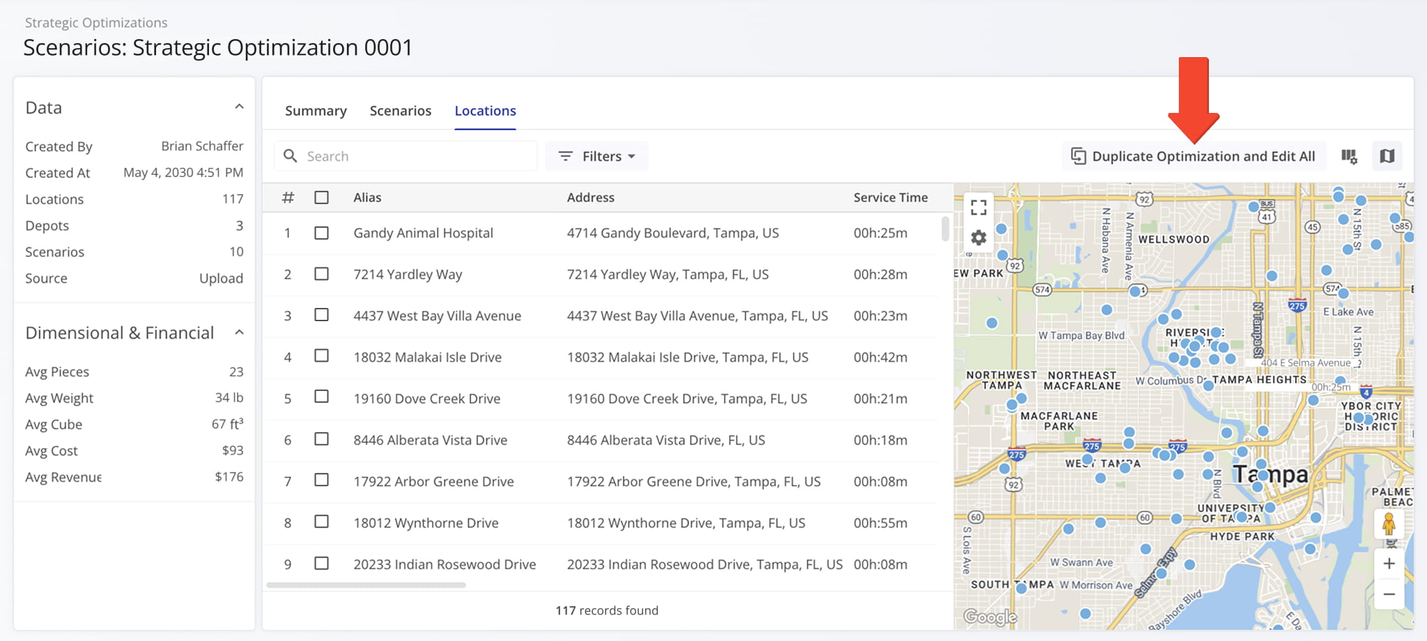 When you Manage Strategic Optimizations, you have the option to duplicate an optimization as a customizable draft. This update enables you to refine the Location Dataset of your duplicated draft by allowing the deletion of Locations.
