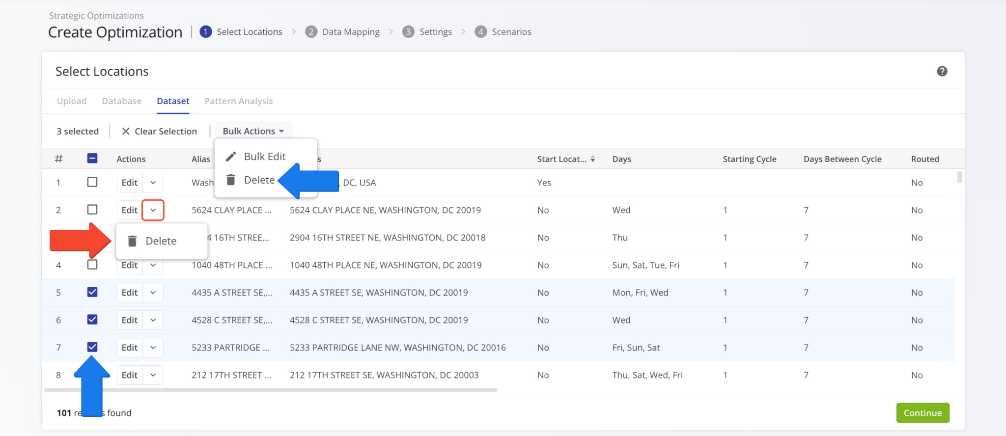 Click the Down Arrow and select “Delete” to remove a Location. To delete multiple Locations, check the boxes next to them, click “Bulk Actions“, and select “Delete“. Previously, duplicated Strategic Optimization datasets couldn’t be customized.