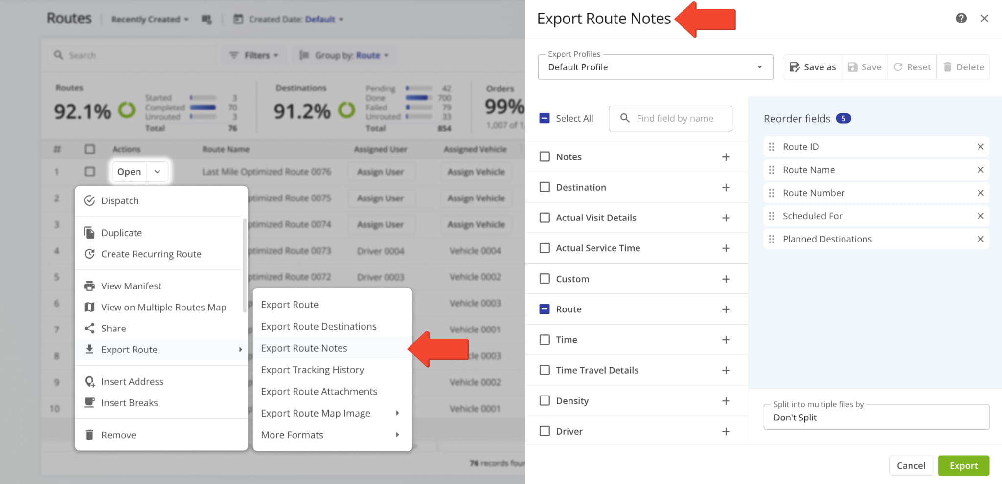 A new “Export Route Notes” option was added to the Route Export menu. It enables you to export all destination notes associated with the selected routes with full export column customization functionality.