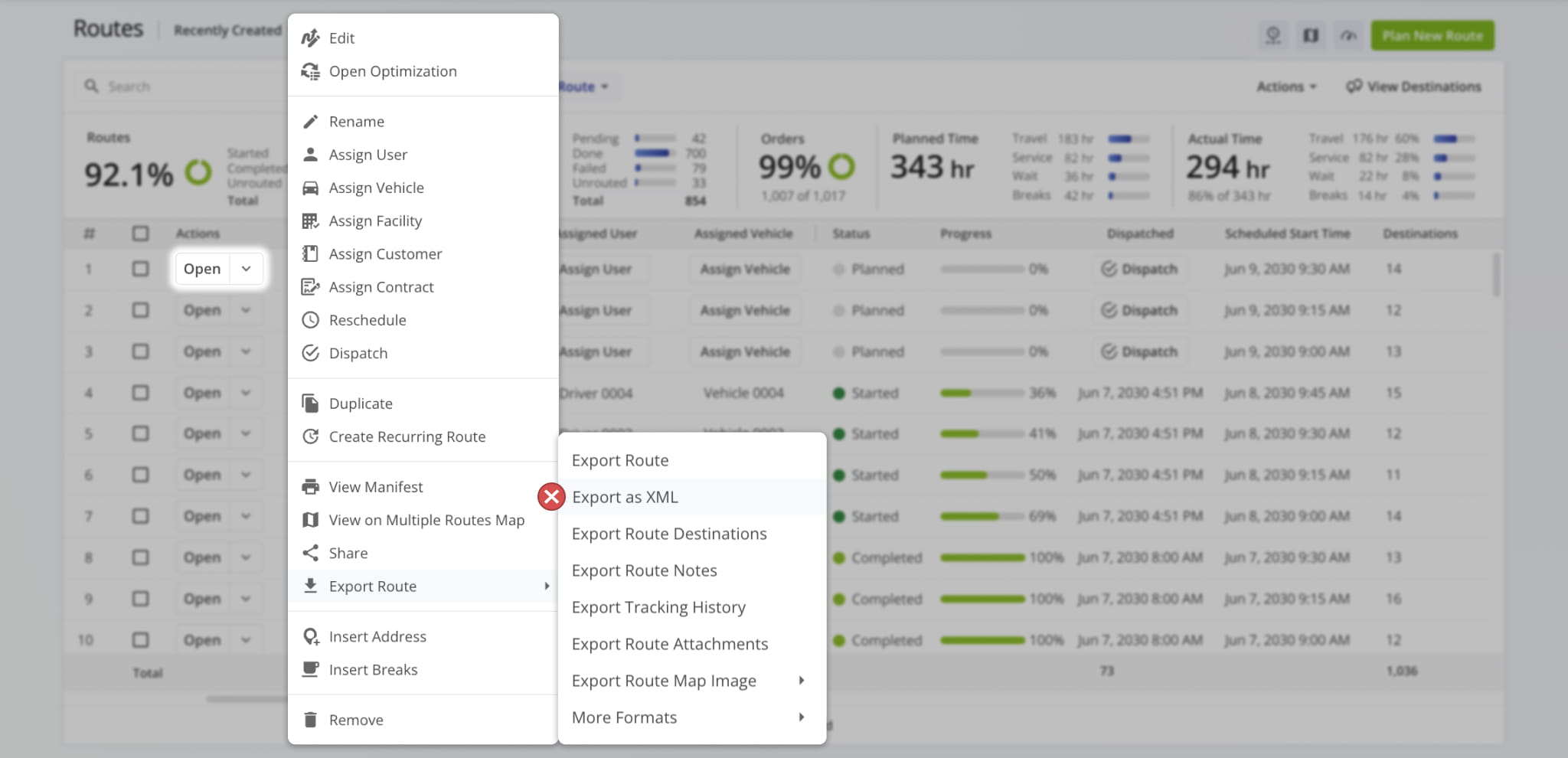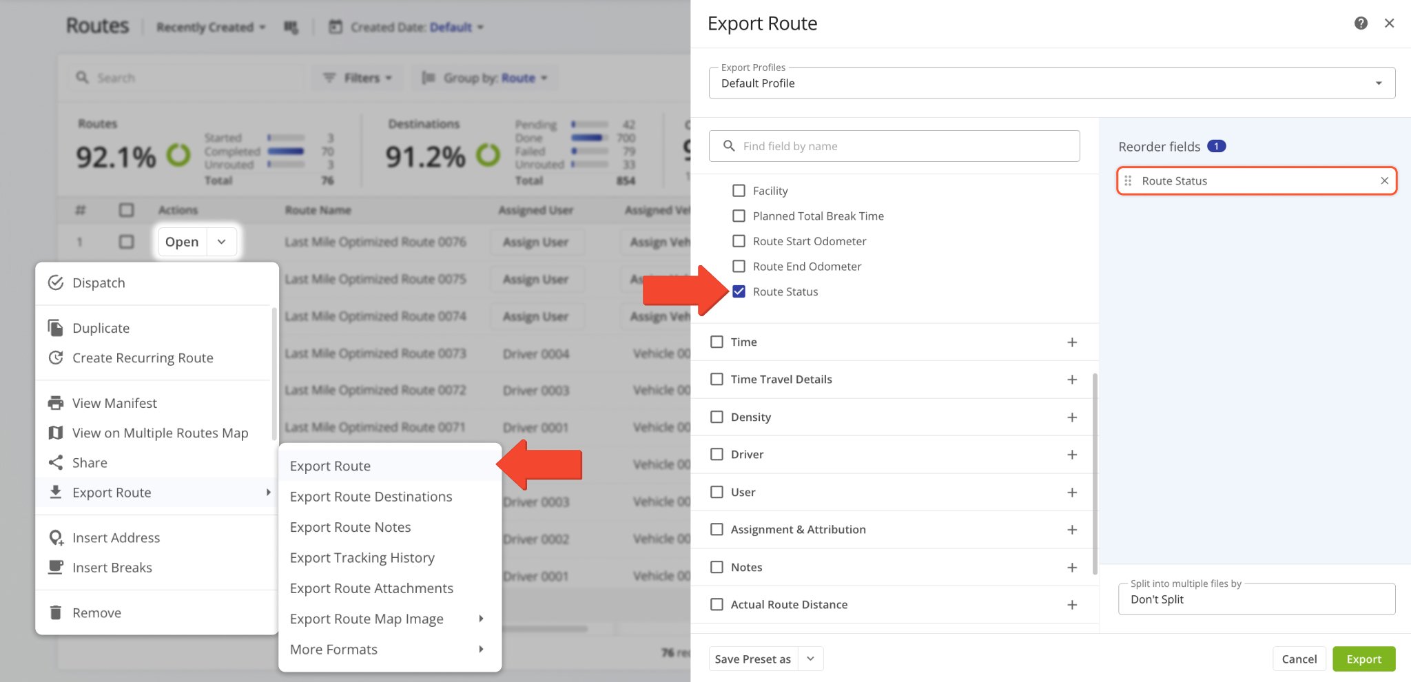 The “Route Status” data column was added to the Route Export customizer. This column shows the current status (“Planned“, “Started“, or “Completed“) of the route at the time of export. Learn more about exporting routes.