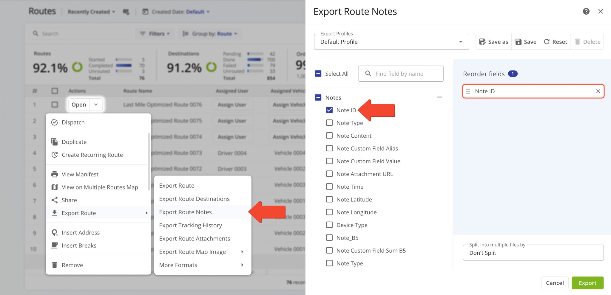 Additionally, the “Note ID” data column was added to the Route Notes Export customizer. This column shows the unique alphanumeric IDs Destination Notes on the route. Learn more about exporting routes.