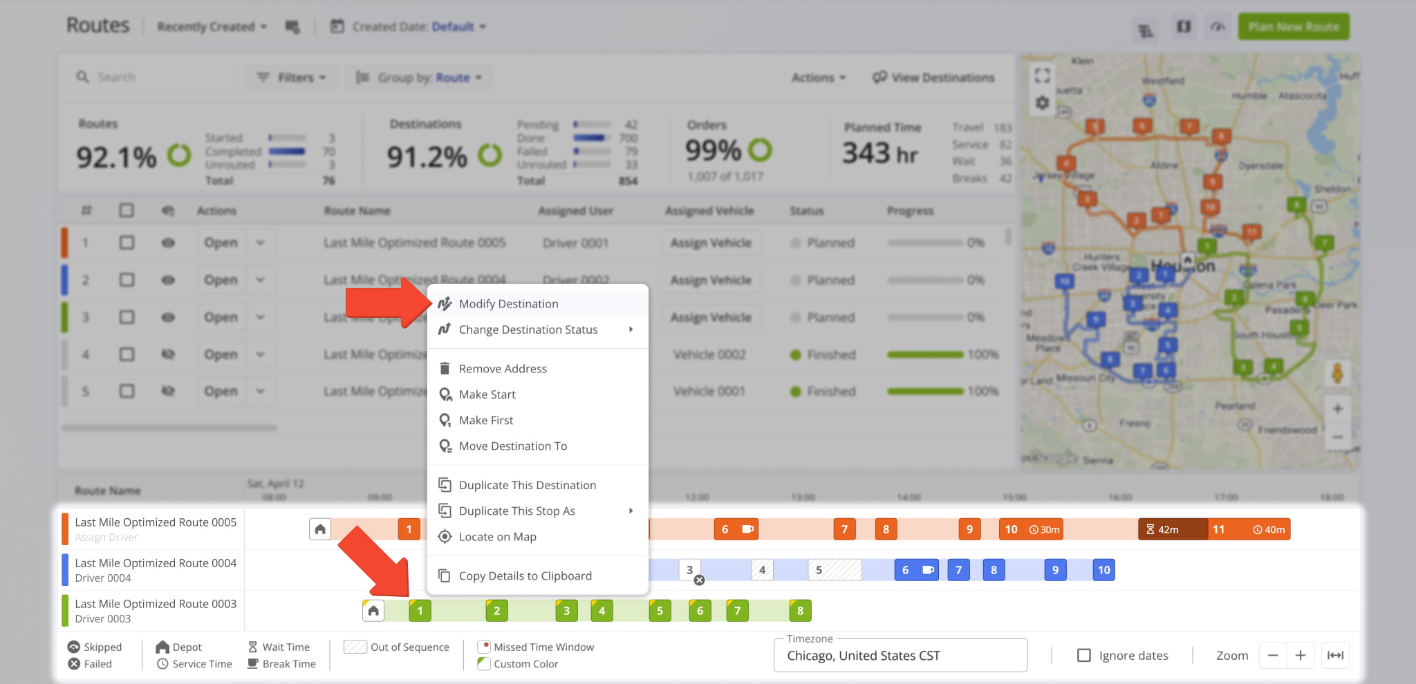 A new option to “Modify Destination” was added when you right-click a destination in the Routes Page Timeline.