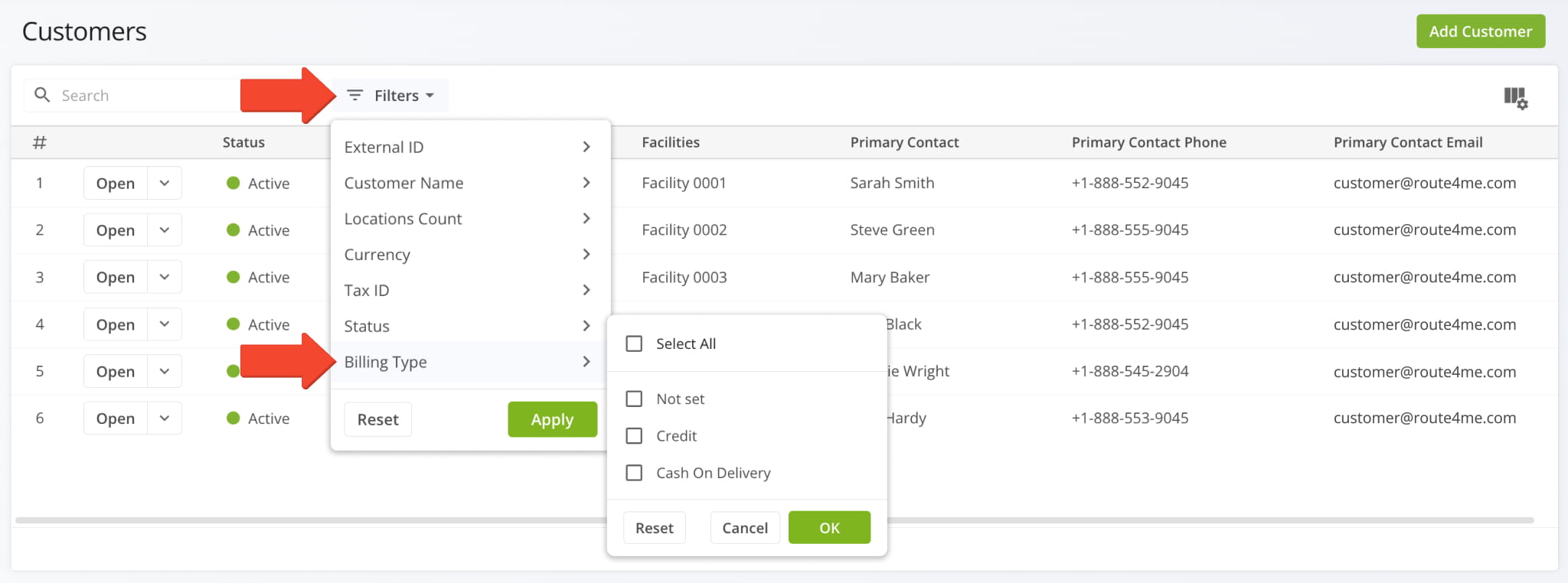 Additionally, Billing Type is also available as a Filter on your Customers Page.