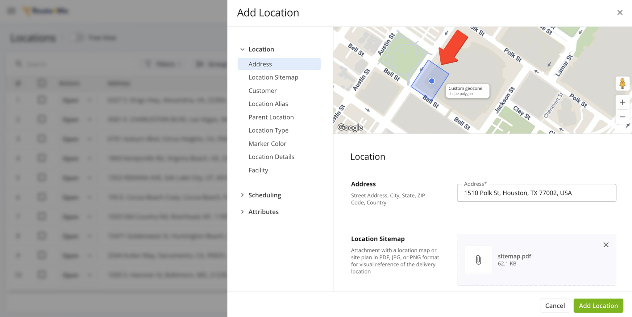 A new “Location Sitemap” field was added when you add and edit Customer Locations. It enables you to upload sitemap images for location previews that users assigned to routes can view on the mobile app.