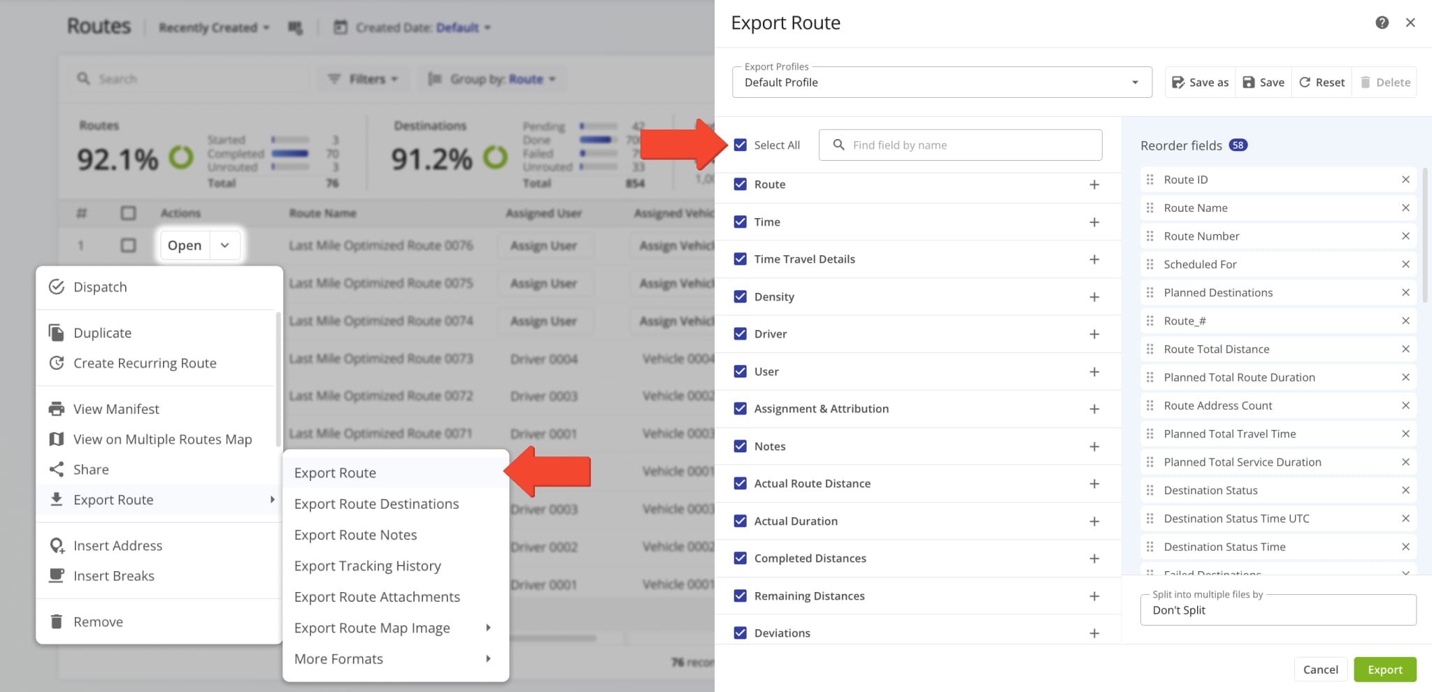 A new “Select All” option was added to the Route Export configurator. This enables you to select every available route data option for your export file with a single click, streamlining the process of downloading route data. Learn more about exporting routes.