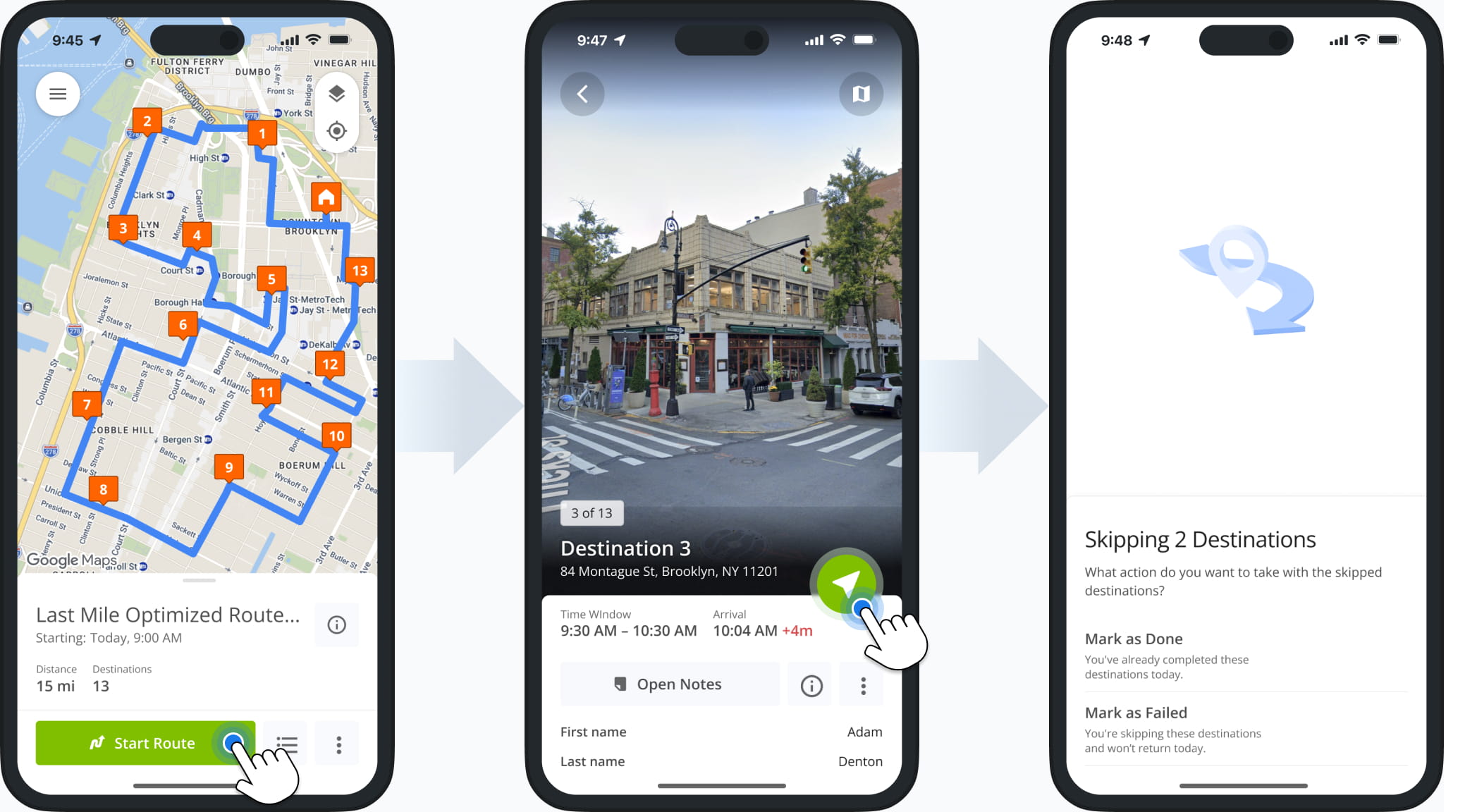 - Sequence Adherence (%): Shows the percentage of destinations that were visited in the planned order.