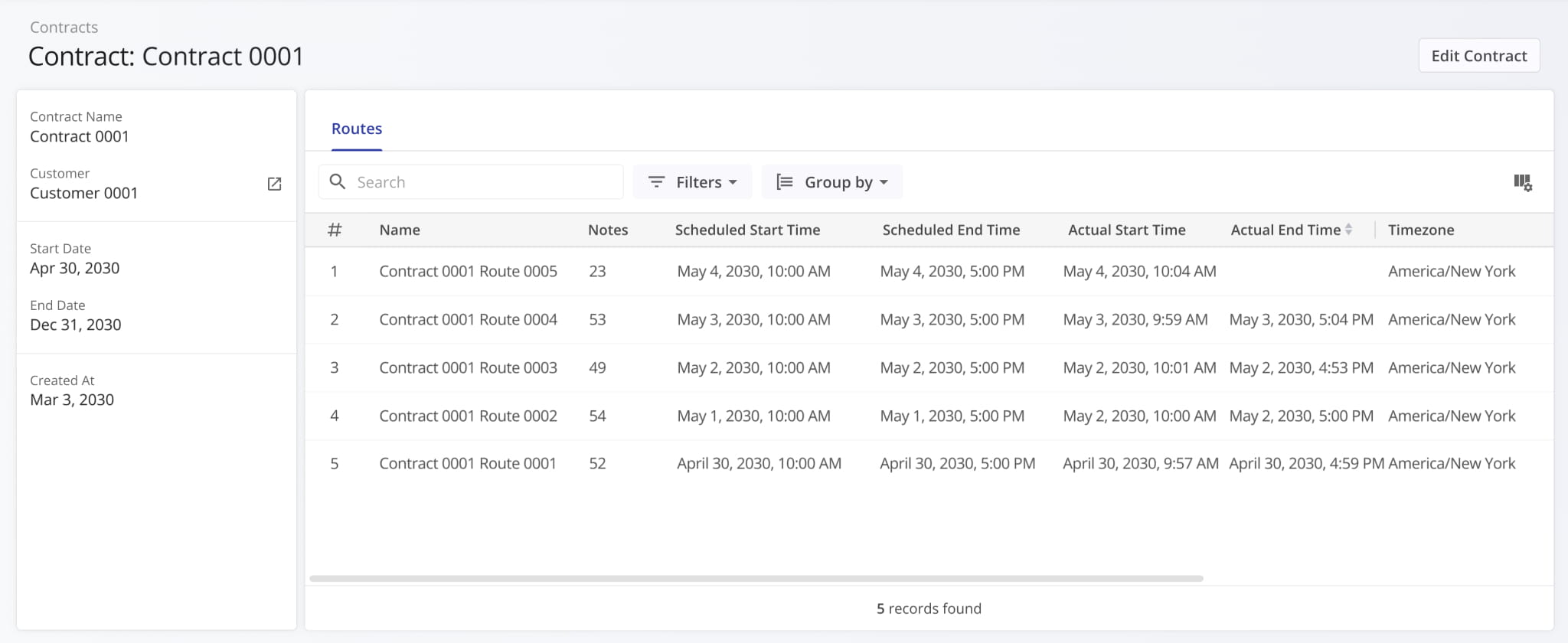 Assign Contract: Assign a contract to the routes to tie route activities to specific contractual obligations.
