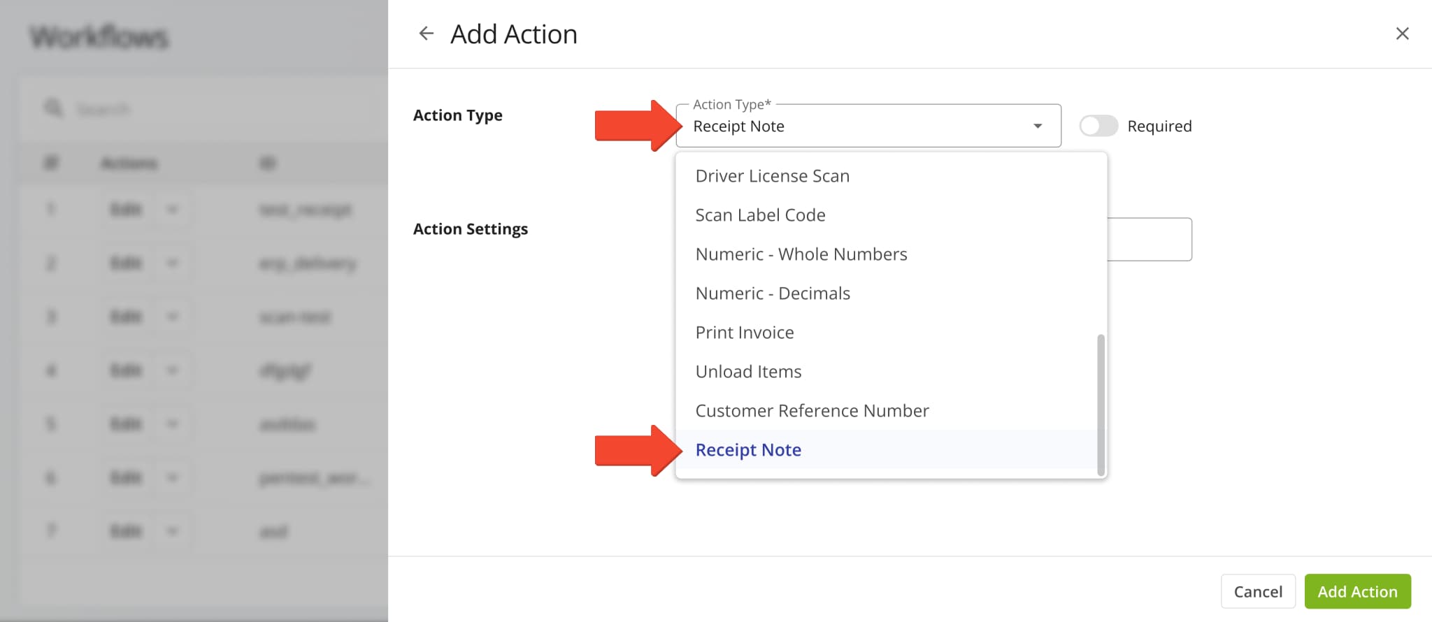 A new “Receipt Note” action was added to Workflows. With this new action type, assigned users can easily confirm the issuing or collection of receipt notes at destinations. Learn more about collecting proof of service.