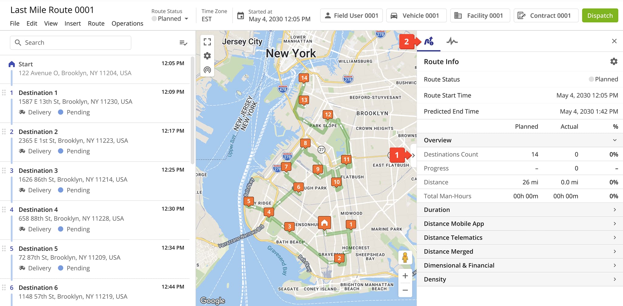 A new “Route Info” sidebar was added to the Route Editor. It shows planned and actual route data and percentages in a customizable vertical format. To open it, click the Sidebar Button to the right of the map and then click the Route Info icon.