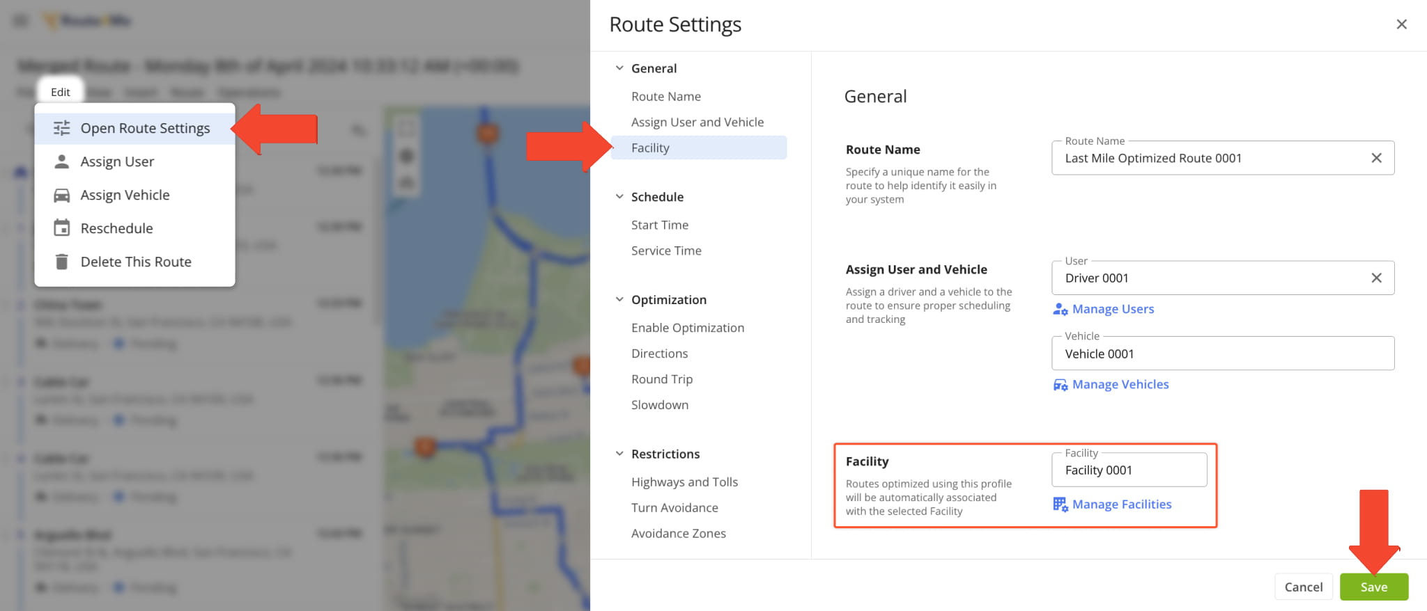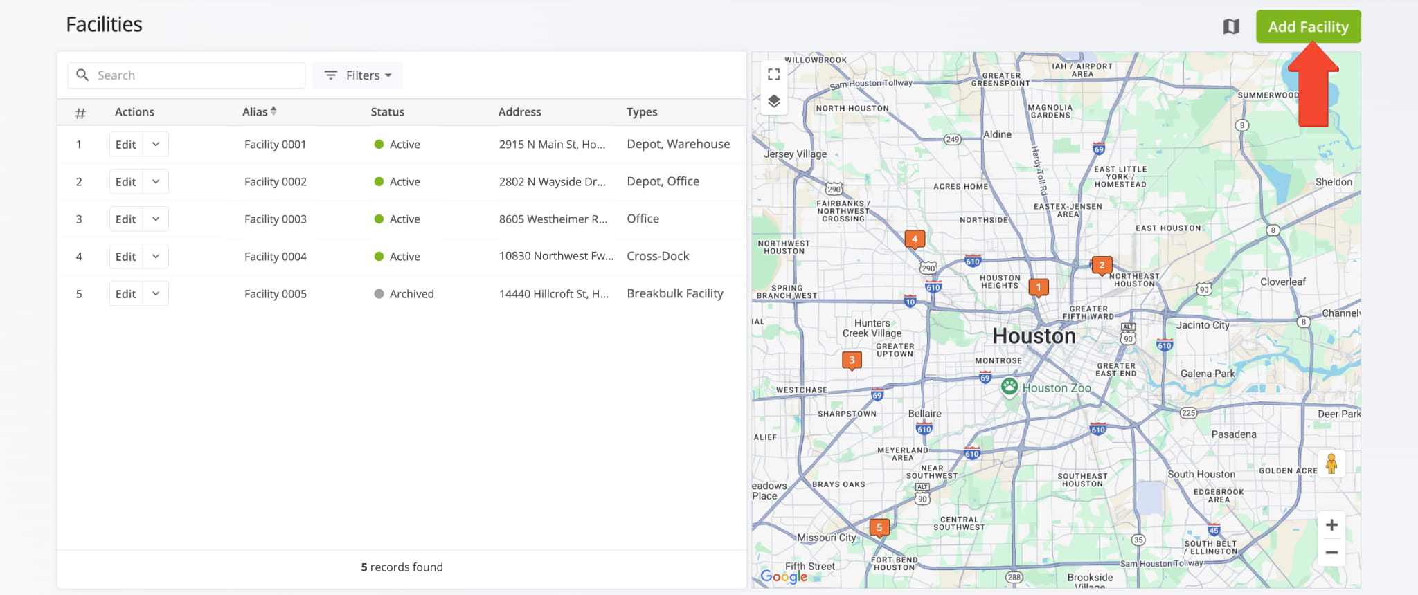 1Add your operational and business Facilities to Route4Me. Connect your routes, users, vehicles, and assets to warehouses, depots, offices, or service centers for smarter, location-specific planning.