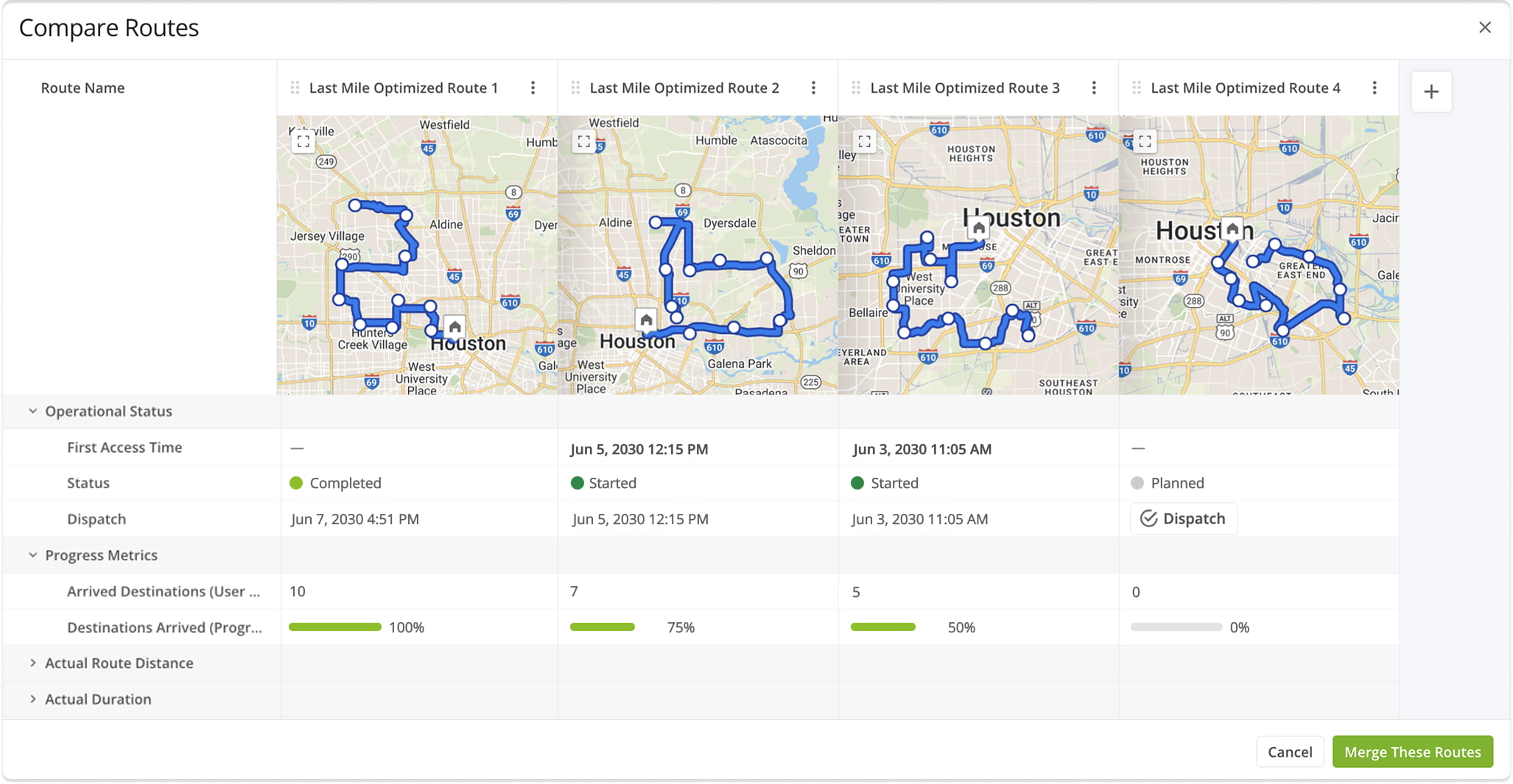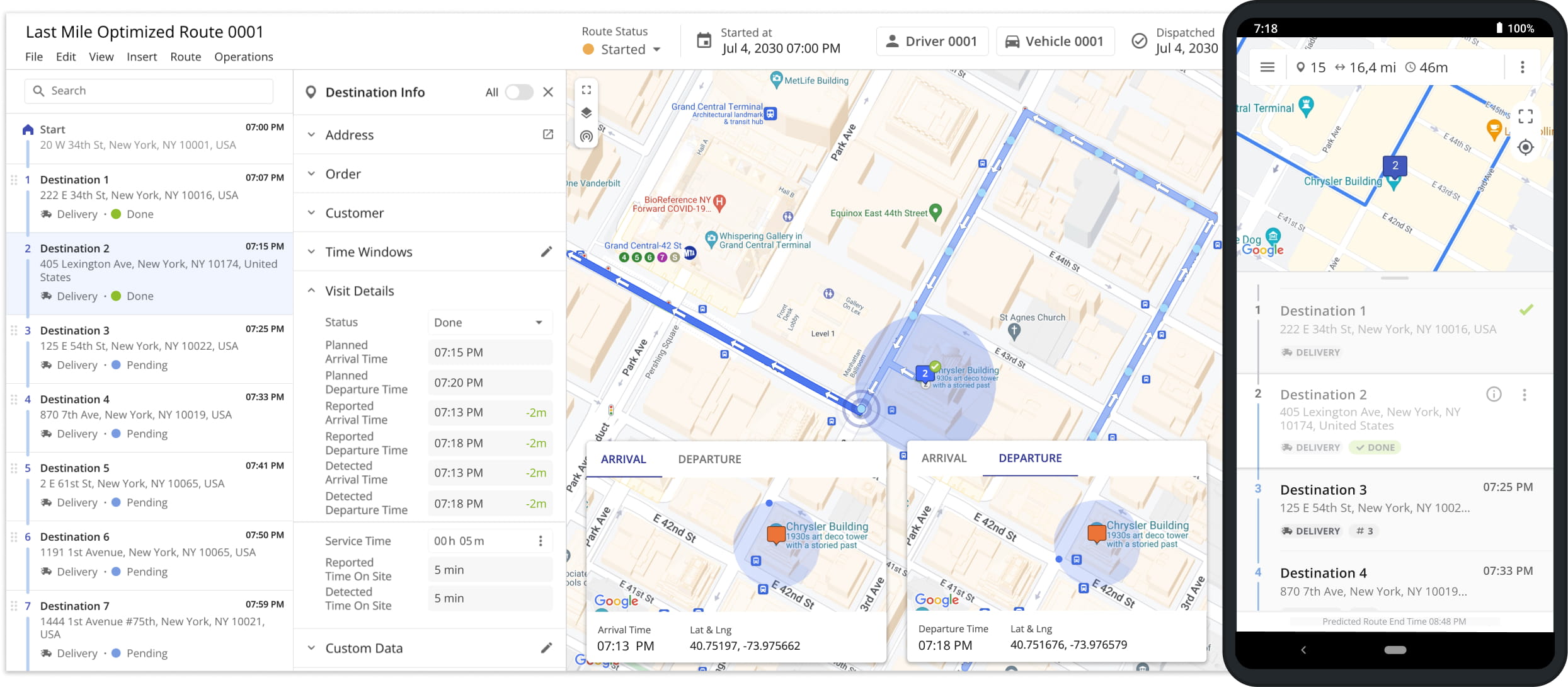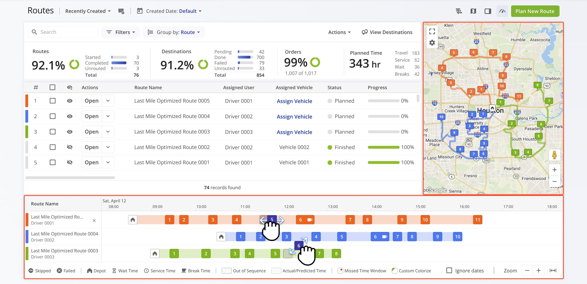 The Routes page now features a Map and Route Timeline, making it easier to visualize routes, track progress, and update destinations by adding, removing, or moving stops between routes.