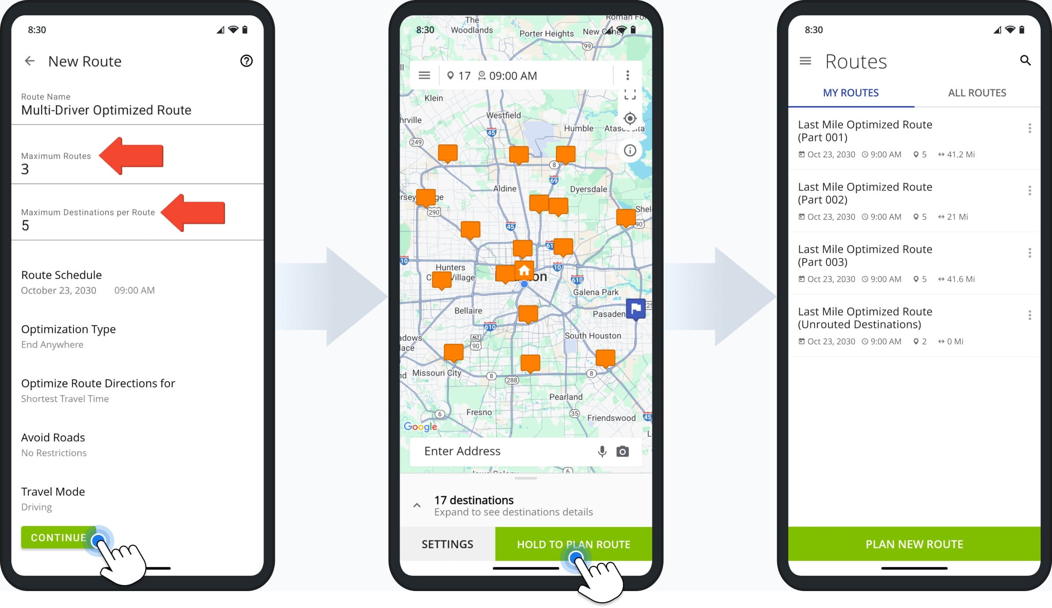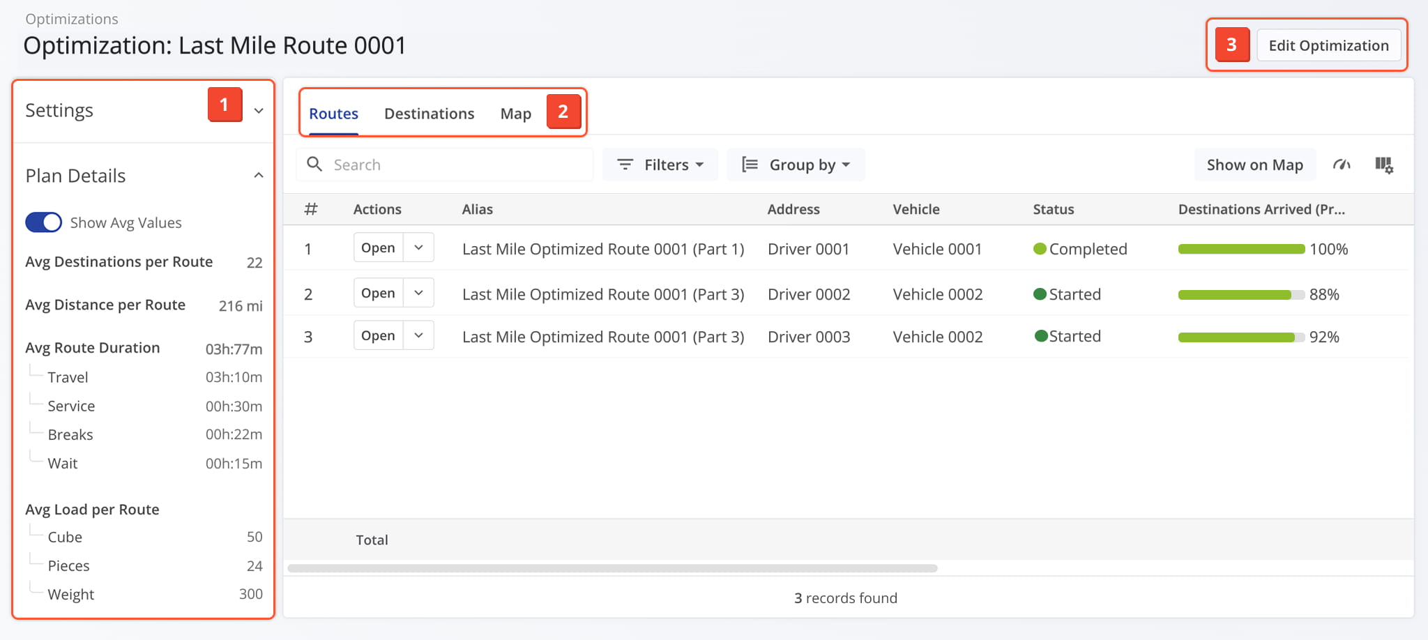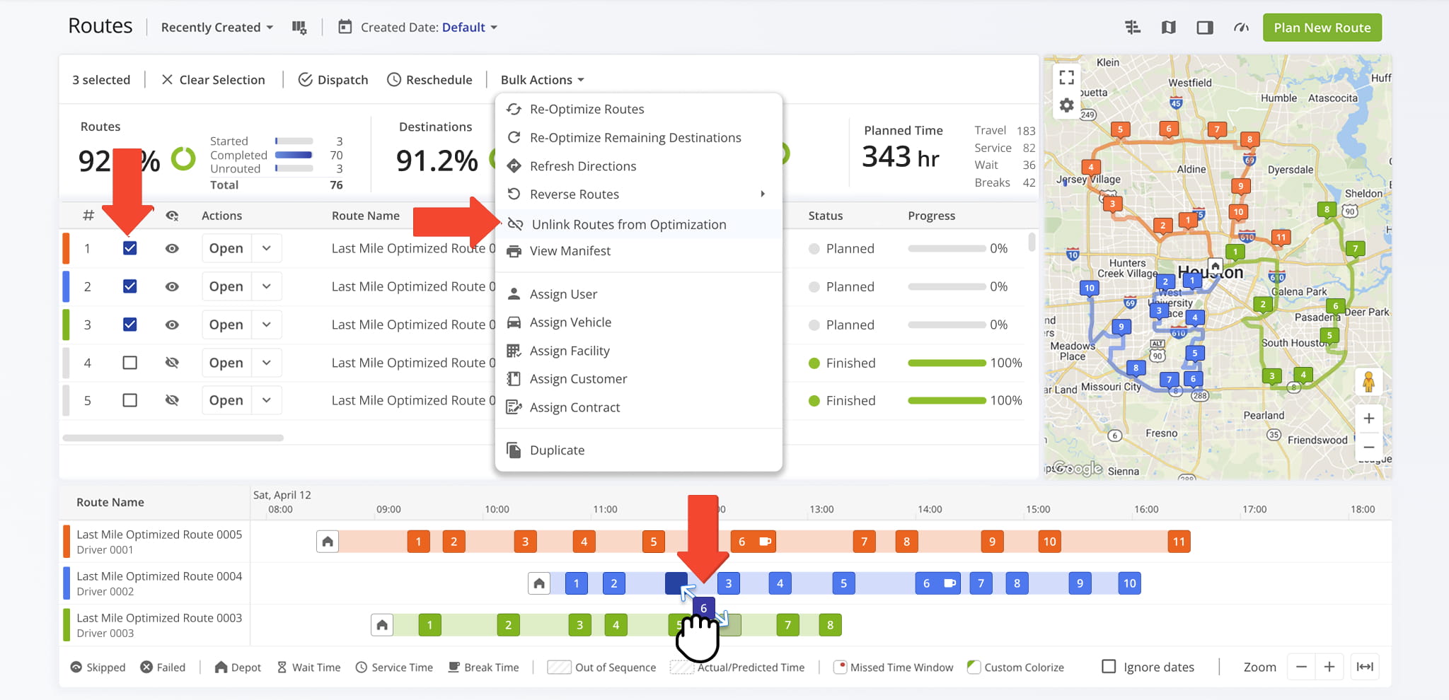 The Routes page now features a Map and Route Timeline, making it easier to visualize routes, track progress, and update destinations by adding, removing, or moving stops between routes.