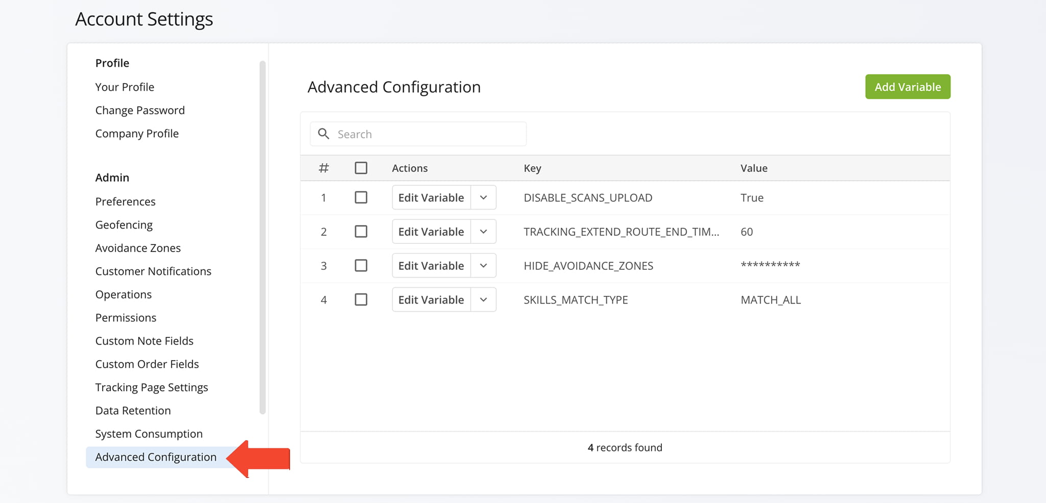 The Advanced Configuration Editor has been redesigned to match Route4Me’s modern interface, and is easier to access and manage from your Organization Settings.