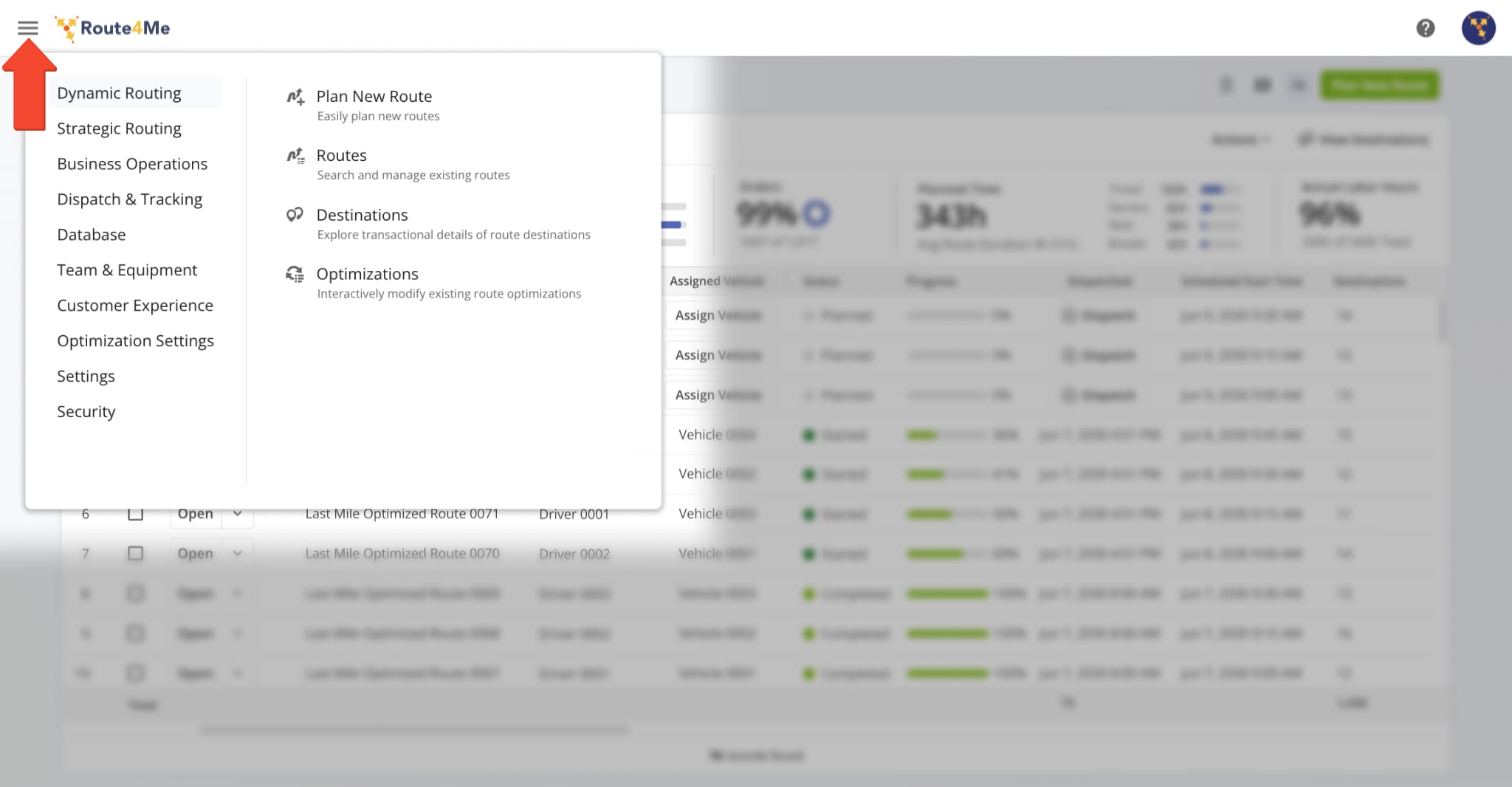 The Route4Me Web Platform Navigation Menu has been updated with a new structure and clearer menu item names for more intuitive and consistent navigation.
