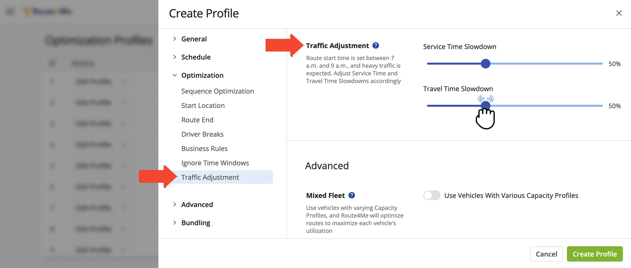 You can now adjust traffic, service, and travel slowdowns on planned and optimized routes with greater ease.