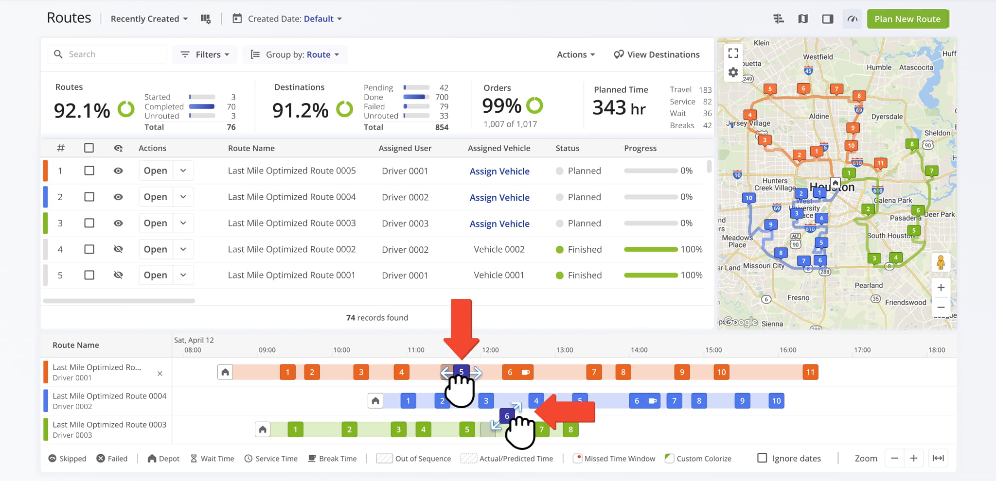 4You can now select multiple destinations in the Route Editor to rearrange their sequence, move destinations between multiple routes on the Routes Map, and adjust any destination’s position using the Route Timeline.