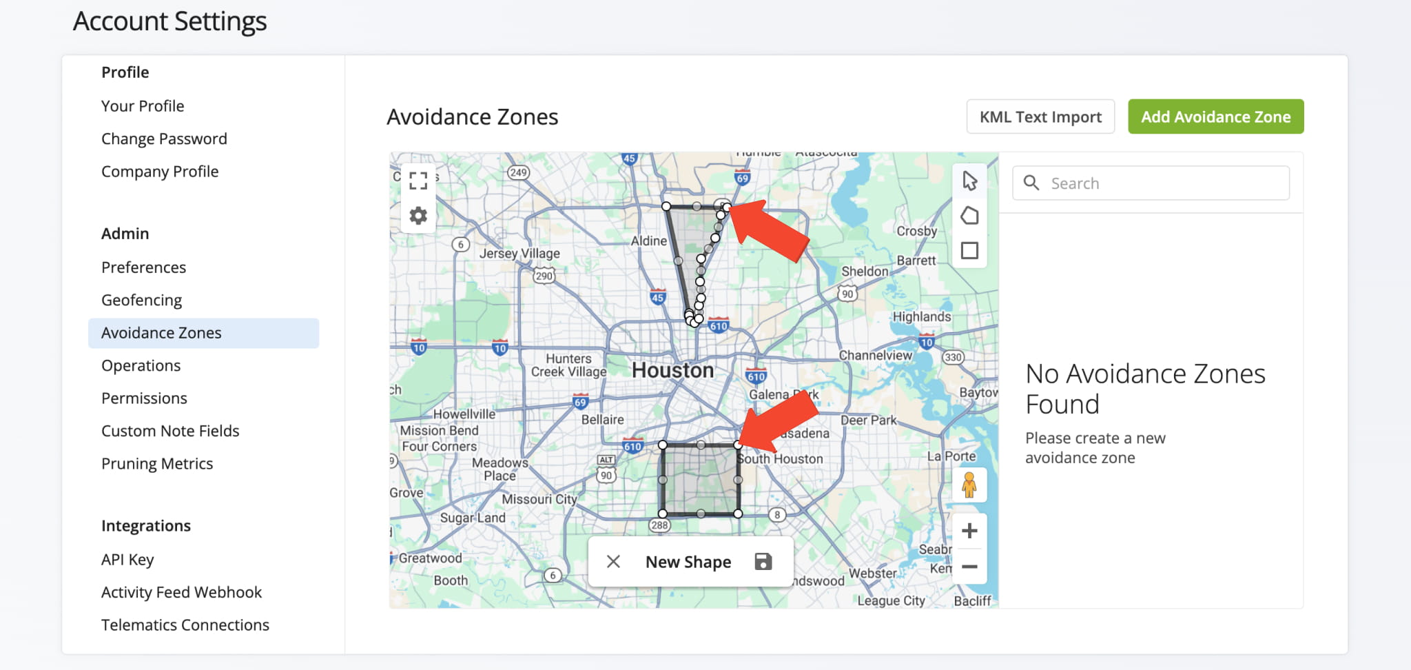 The Avoidance Zones interface has been redesigned to match Route4Me’s modern UI, with the updated settings now available as a dedicated tab in your Account Settings.