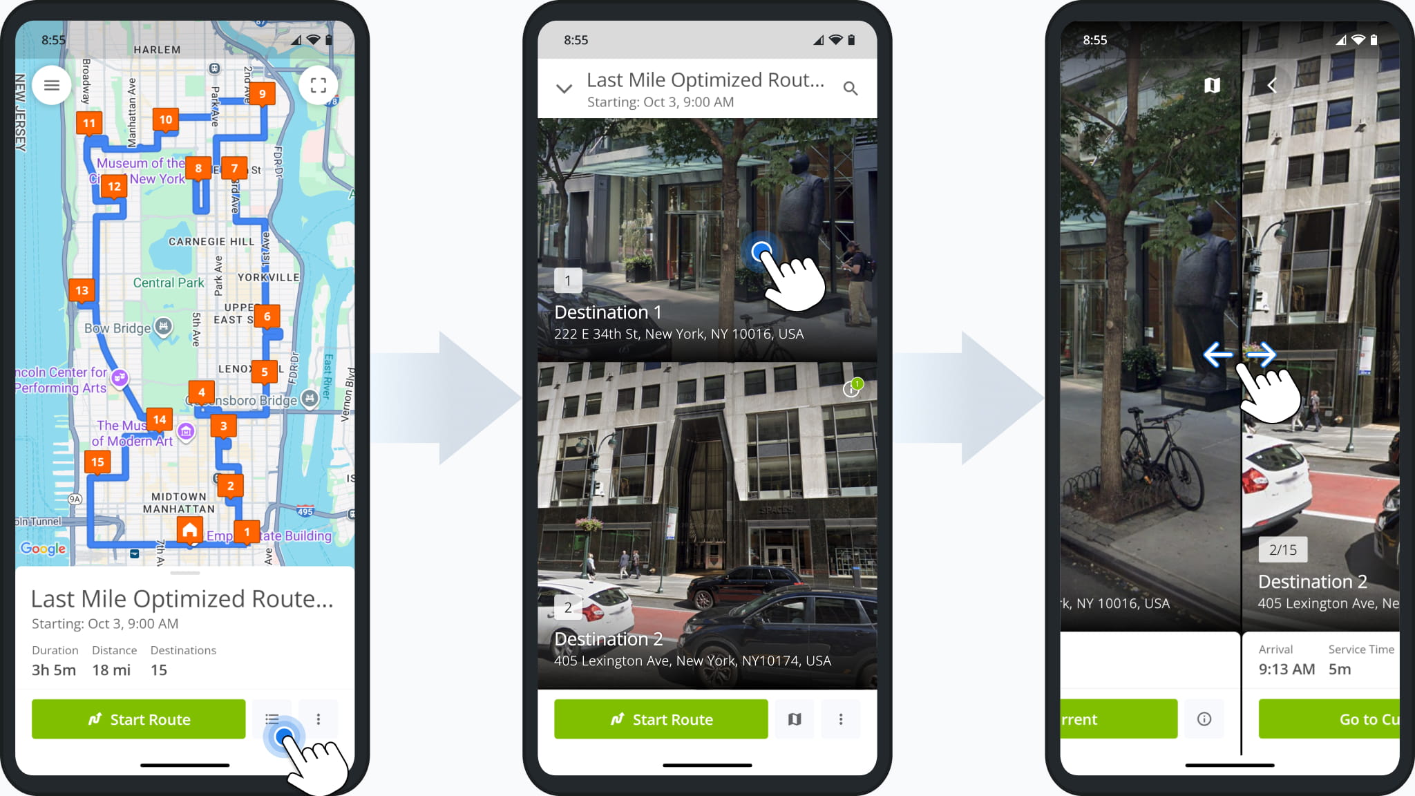 1Route4Me’s Mobile App Visually Immersive Route View mode provides Google Street View previews of destinations, helping drivers recognize entrances, loading docks, and drop-off points, especially useful for large buildings and complex sites. Users can preview destinations, prepare for challenges, and complete routes more efficiently, while keeping all essential destination details accessible.