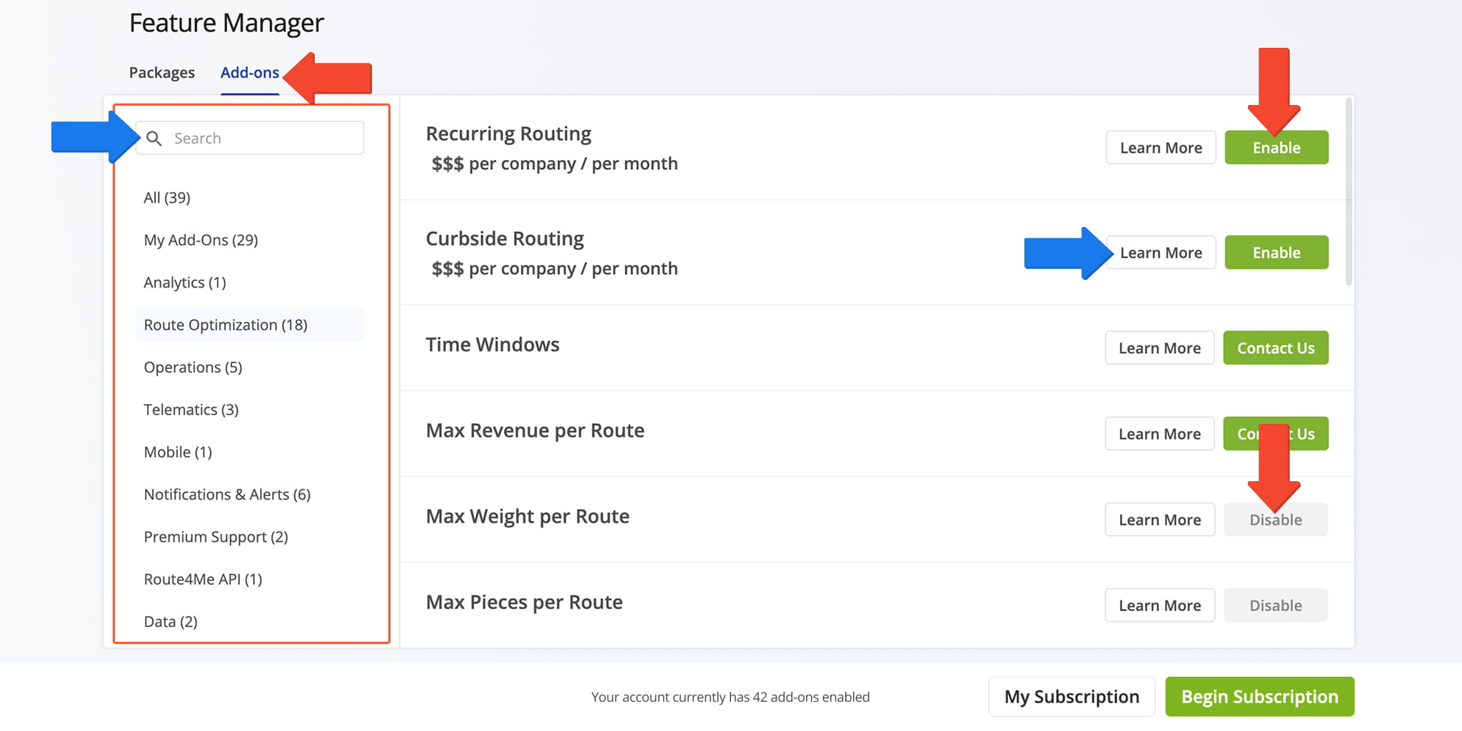 The Subscription Management page and Feature Manager have been redesigned to match Route4Me’s modern interface, making billing, subscriptions, and add-on management easier and more seamless.