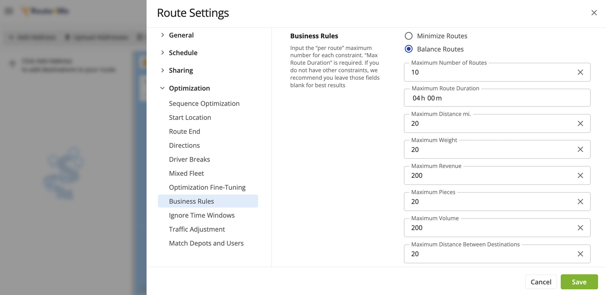 A new, structured Route Settings panel is being introduced to provide a more consistent and scalable configuration experience when planning routes. The updated layout makes it easier to navigate, adjust, and understand optimization parameters and business rules in a unified interface.