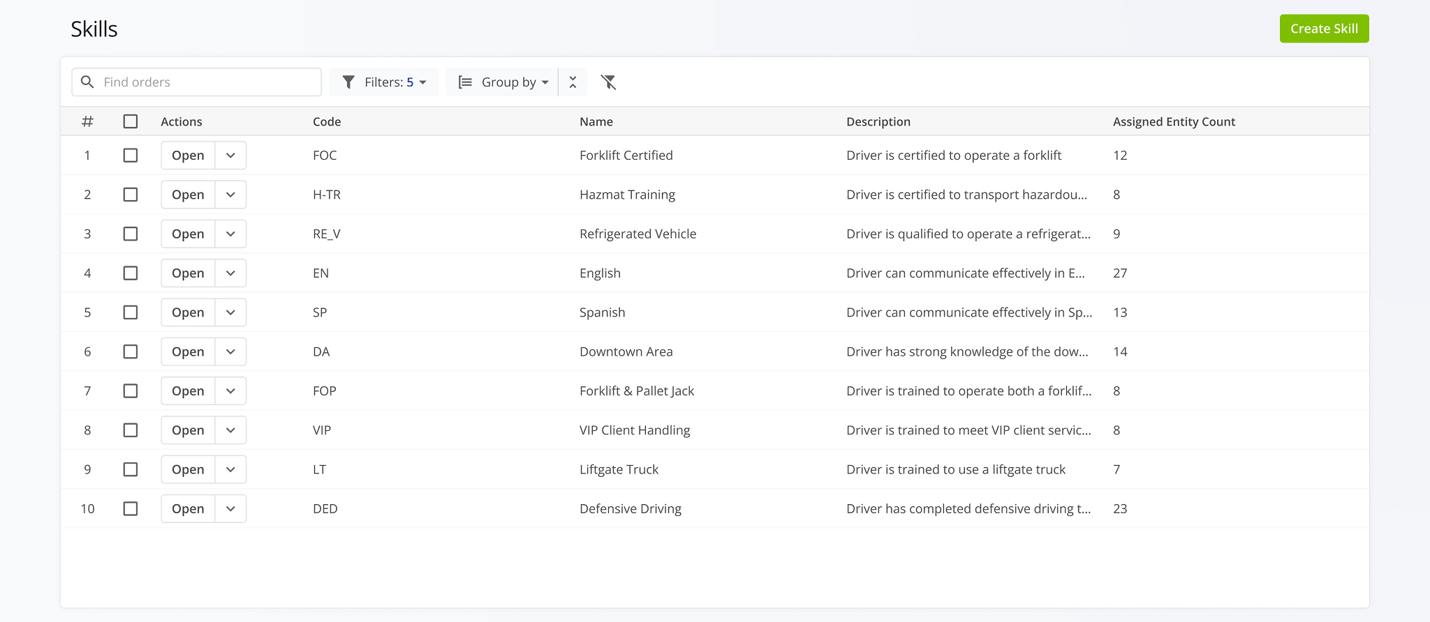 12A new Skill Snapshot page is in development. It will provide a centralized view of all entities associated with specific User Skills, offering better visibility into how Skills are applied across your operations. This includes linked users, routes, orders, and other relevant data points, helping to understand the distribution and utilization of skills within an organization.