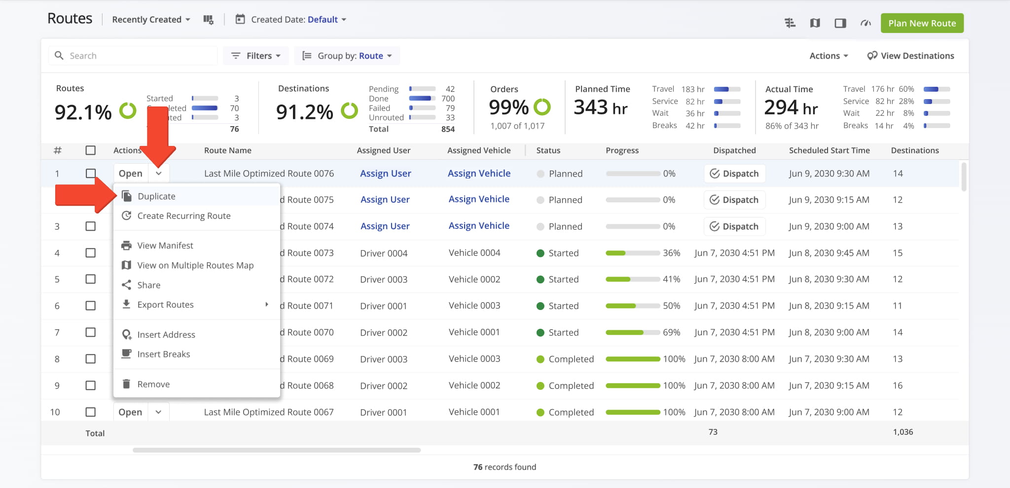 This allows teams to replicate optimized routes quickly while maintaining operational consistency. See our dedicated guide to learn more about duplicating routes.