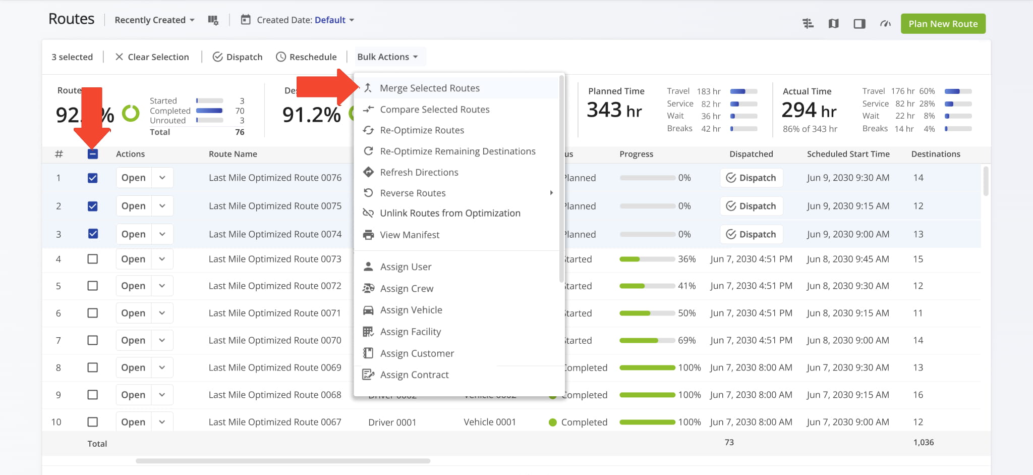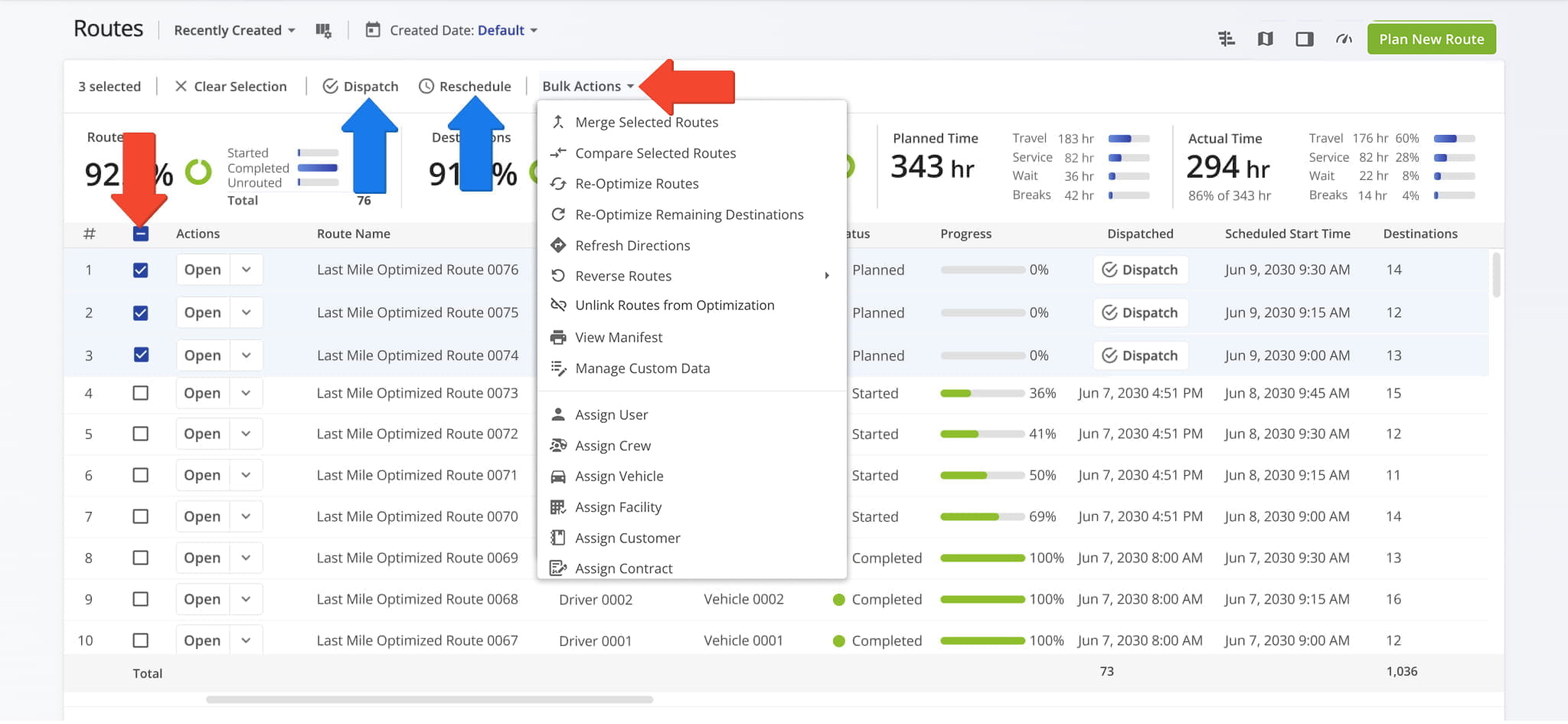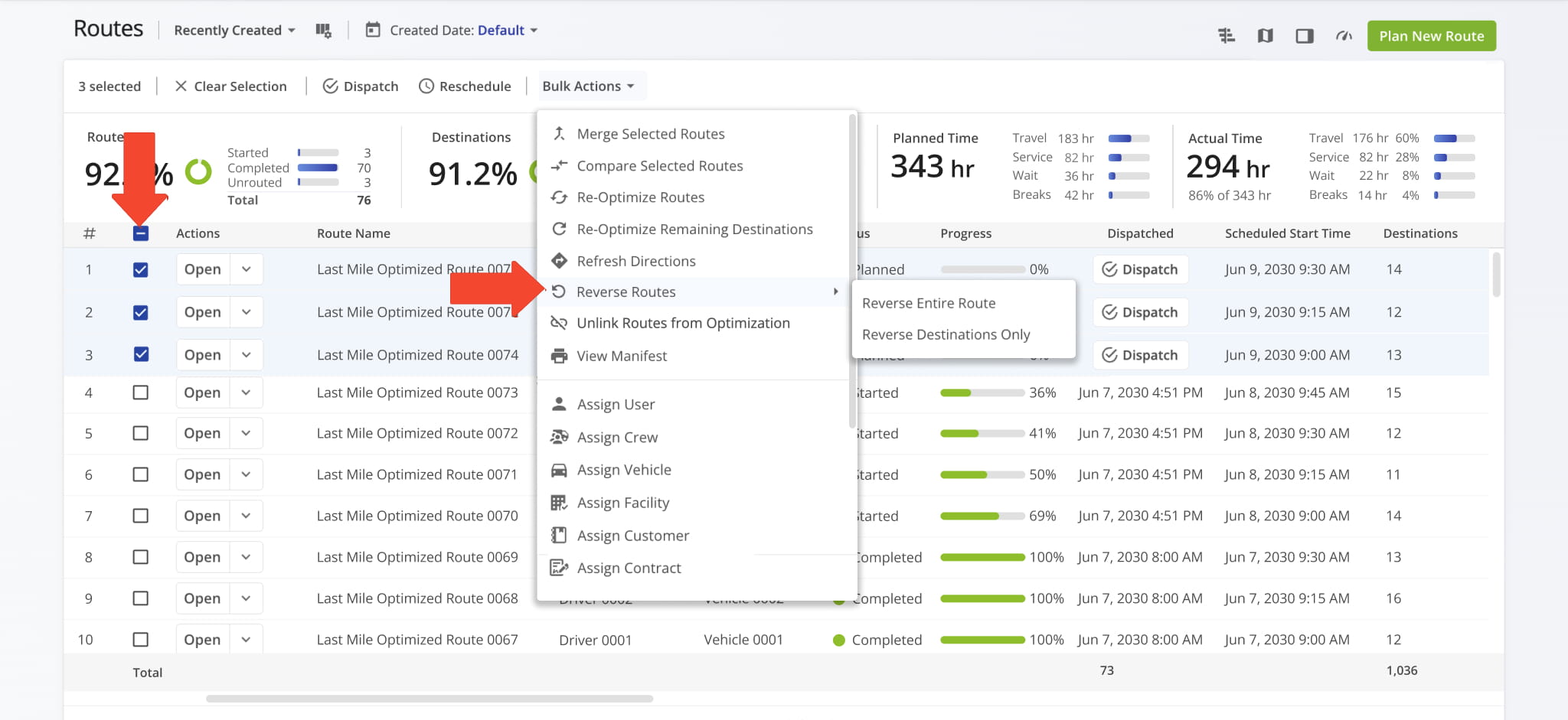 | Assign Vehicle | Assign a vehicle to the selected routes to ensure proper route execution and tracking |