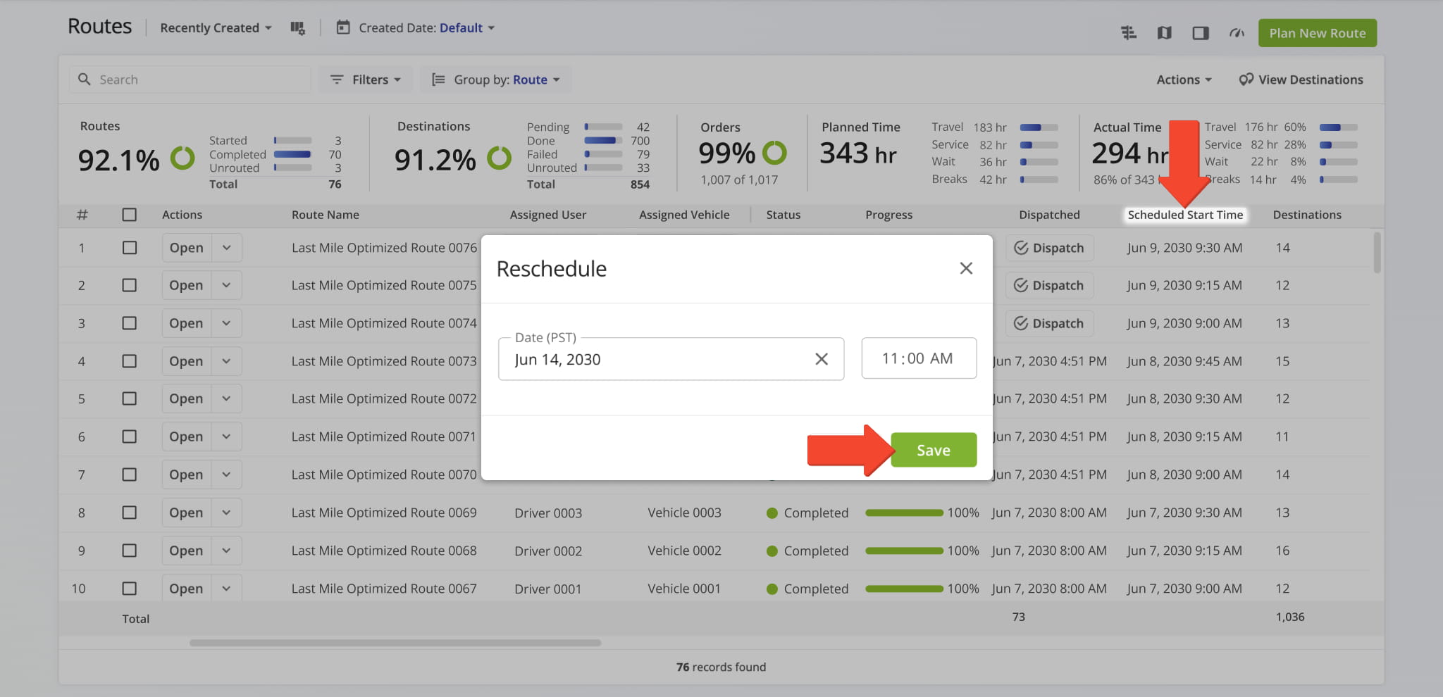 Reschedule Routes – Update Route Start Times