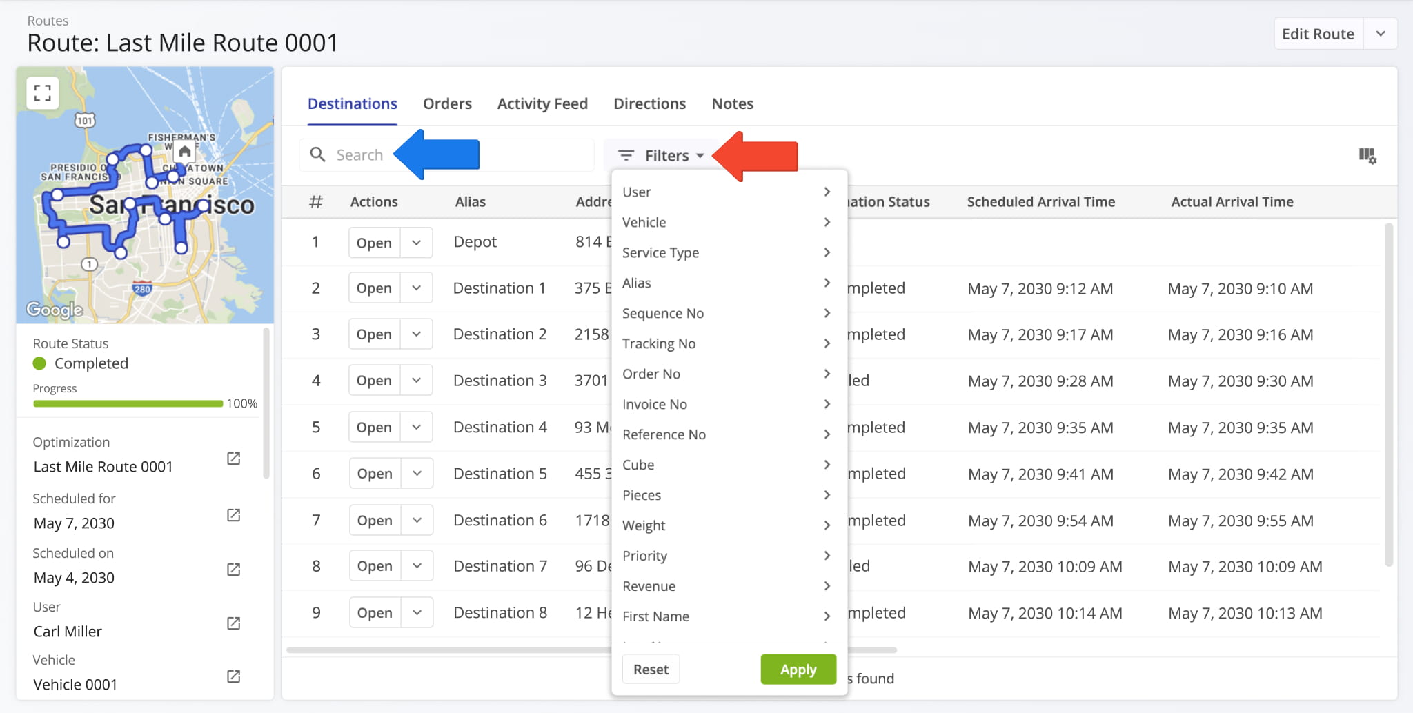 You can also click “Open” next to any route Destination to access its Destination Snapshot.