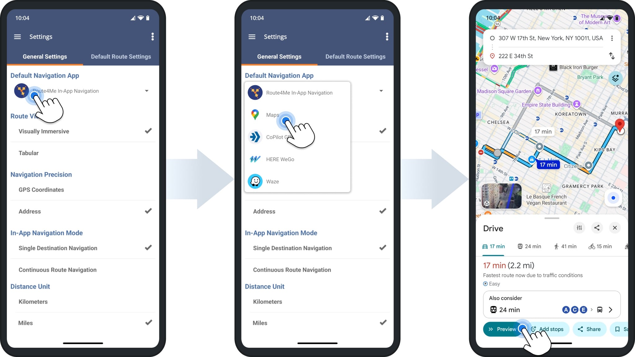 Start And Navigate Multi-Address Routes – Using In-App Or Third-Party Navigation