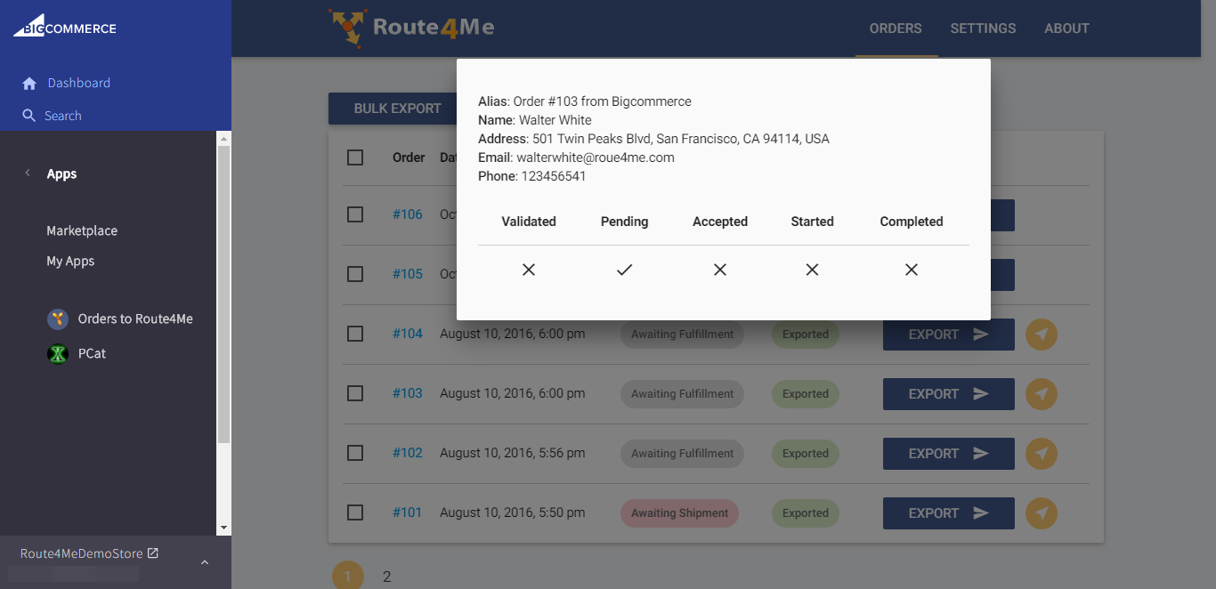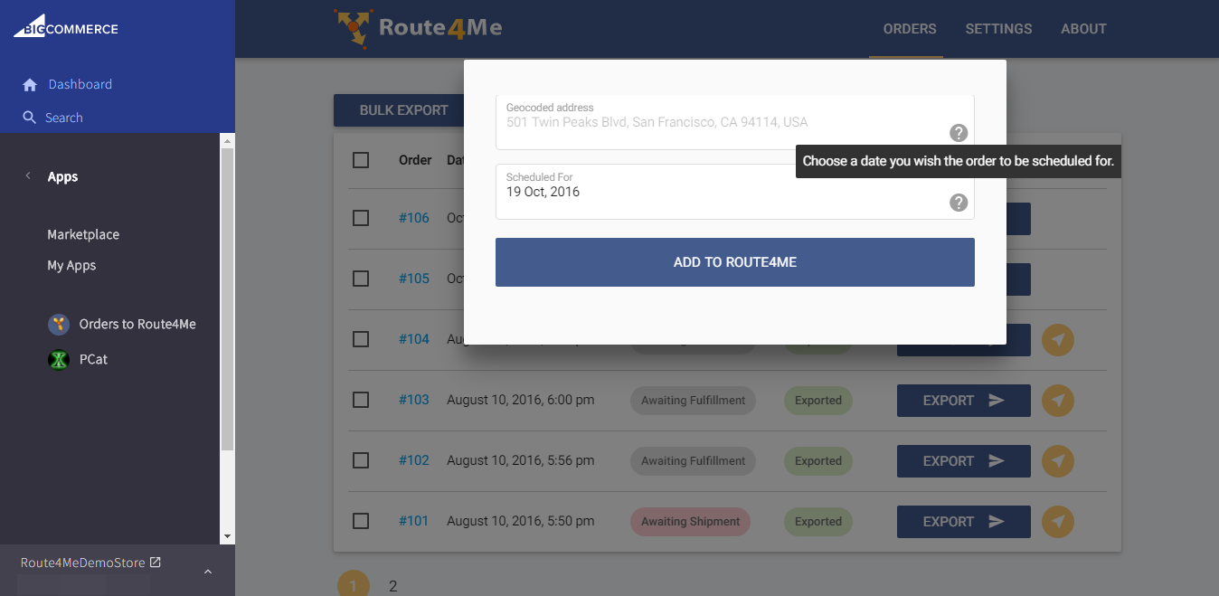 Route4Me Plugin for the BigCommerce eCommerce Platform