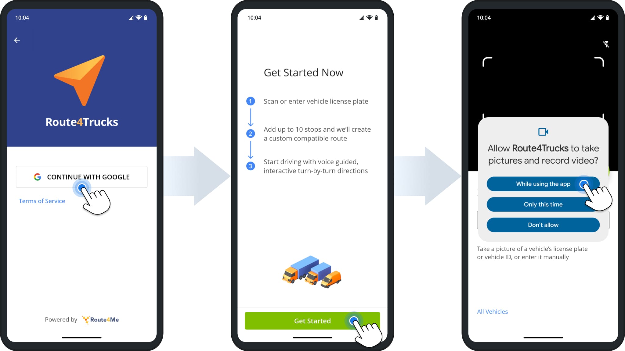 The app will then prompt you to enable camera permissions. Route4Trucks uses the camera for the in-app license plate scanner.