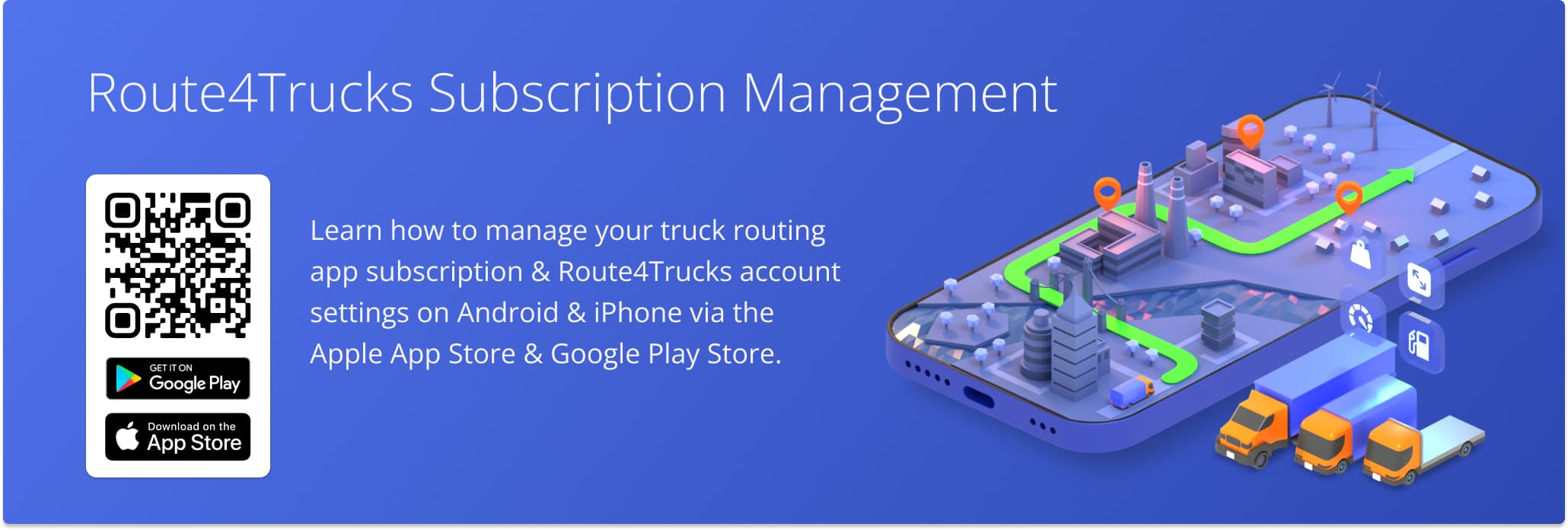 NOTE: Route4Trucks is a standalone app. Route4Trucks and Route4Me accounts and subscriptions are managed separately.