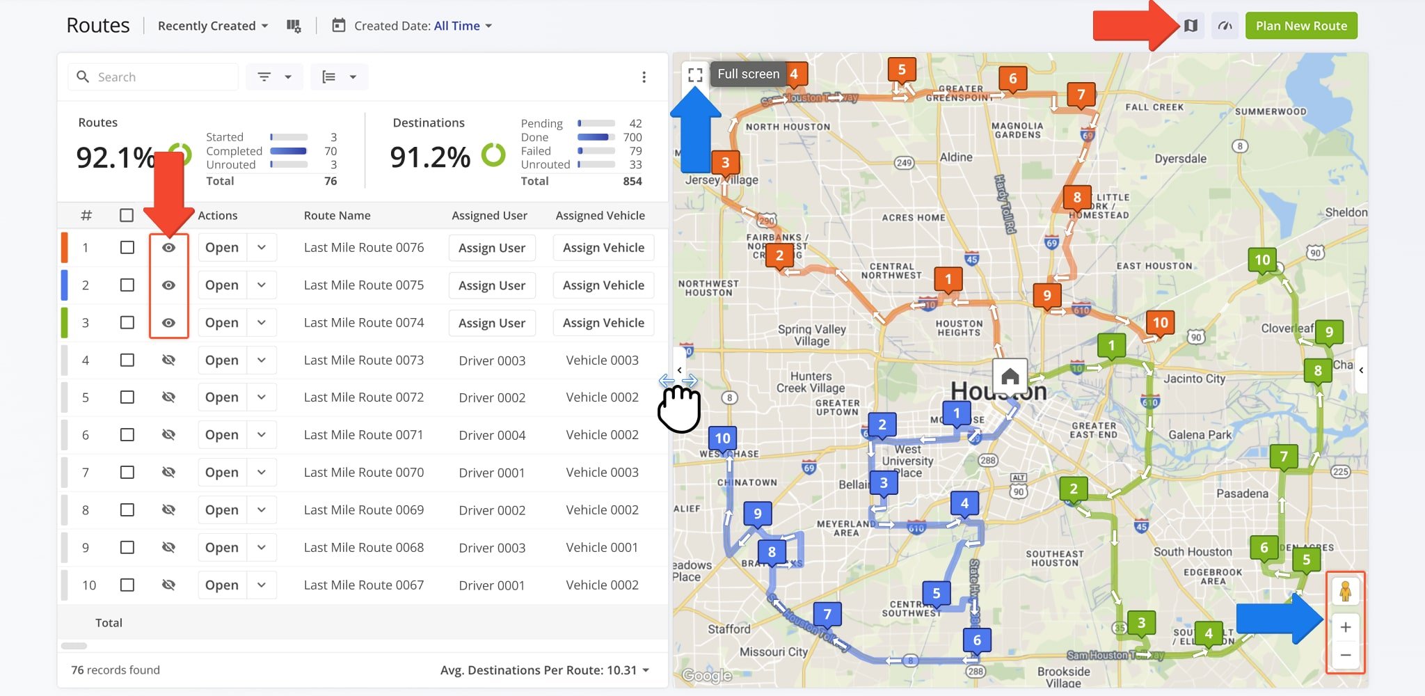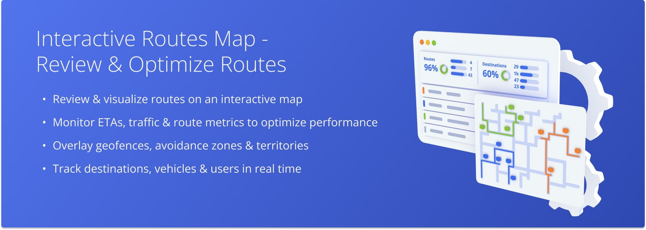 Visualize, monitor, and optimize routes, destinations, and fleet operations in real time.